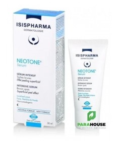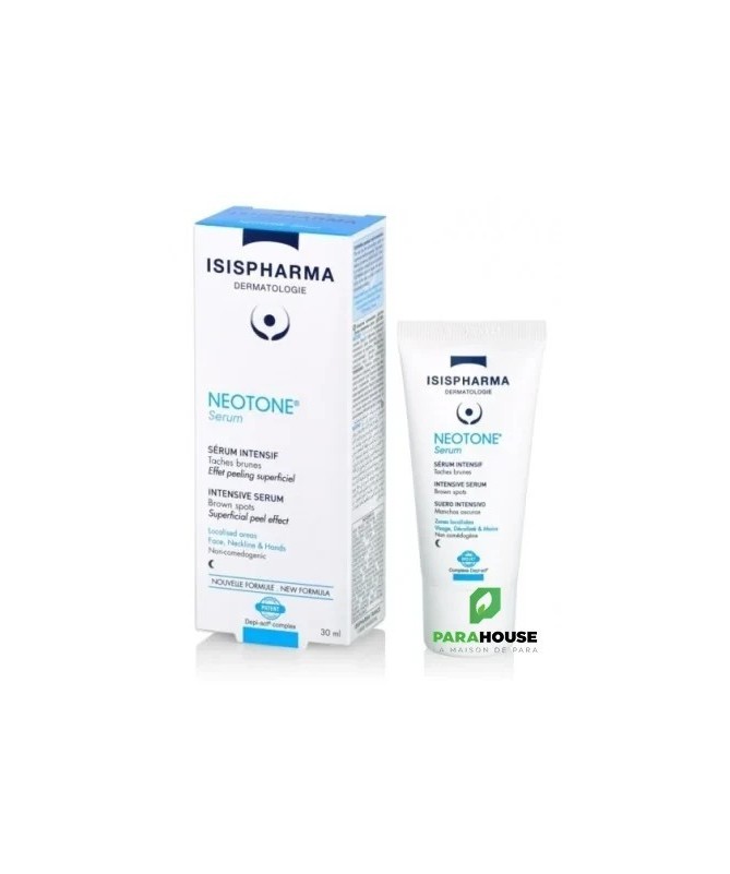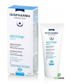 ISISPHARMA NEOTONE SERUM INTENSIF NUIT 30ML Réduisez visiblement vos taches brunes en appliquant chaque soir le sérum intensif de la gamme NEOTONE ! Tant de facteurs qui favorise l’apparence de différents types de taches pigmentaires : masque de grossesse, hyperpigmentation post inflammatoire, taches de soleil et de vieillesse… ISISPHARMA NEOTONE SERUM INTENSIF a été développé spécifiquement pour corriger et diminuer tous ces types de taches pigmentaires. Grâce à l’association du complexe breveté DEPI-ACT et d’agents kératolytiques, le sérum intensif NEOTONE agit à la base du processus de pigmentation pour réguler la production de mélanine et ainsi réduire visiblement les taches brunes. Le complexe breveté DEPI-ACT des dernières avancées scientifiques dans le domaine, agit à chaque étape de la formation des taches pour réguler la production de mélanine : Une combinaison d’acide glycolique et d’acide salicylique permet d’éliminer les taches existantes à la surface de la peau grâce à leur effet peeling. Cette combinaison d’actifs innovants qui agit via de nouveaux modes d’action garantie une efficacité exceptionnelle à NEOTONE Serum , et en fait un produit de référence en prescription. Son efficacité a été cliniquement prouvée dès 28 jours : une efficacité dépigmentante équivalente à la molécule médicale de référence* une diminution de l’intensité des taches jusqu’à -43%* une tolérance optimale chez 100% des sujets* Les atouts du sérum intensif NEOTONE : Réduit visiblement tous les types de taches brunes pour un teint unifié et éclatant Un complexe d’actifs innovants inspiré des dernières avancées scientifiques Efficacité prouvée équivalente à la molécule médicale de référence Conseils d'utilisation: Le soir, appliquez NEOTONE SERUM INTENSIF sur une peau propre et sur les zones bien localisées du visage, cou, décolleté et mains. Eviter le contact avec les yeux. Ce produit contient des AHA. Composition: Formule INCI : Aqua (Water), Dimethicone, Glycolic Acid, Caprylic/Capric Triglyceride, Alcohol Denat., Glycerin, Isopentyldiol, Niacinamide , Sodium Hydroxide, Polyacrylate Crosspolymer-6, Hydroxyethylcellulose, 1,2-Hexanediol, Trimethoxybenzyl Acetylsinapate, Hydroxyethyl Acrylate/Sodium Acryloyldimethyl Taurate Copolymer, Salicylic Acid, Dimethicone/Vinyl Dimethicone Crosspolymer, Parfum (Fragrance), Chlorphenesin, Beta-Glucan, Algin, Citric Acid, Xanthan Gum, Polysorbate 60, Benzoic Acid, Sorbic Acid, Sorbitan Isostearate, T-Butyl Alcohol, Bentonite, Glycyrrhiza Glabra (Licorice) Root Extract, Disodium Phosphate, Diacetyl Boldine, Sodium Phosphate. Testé sous contrôle dermatologique