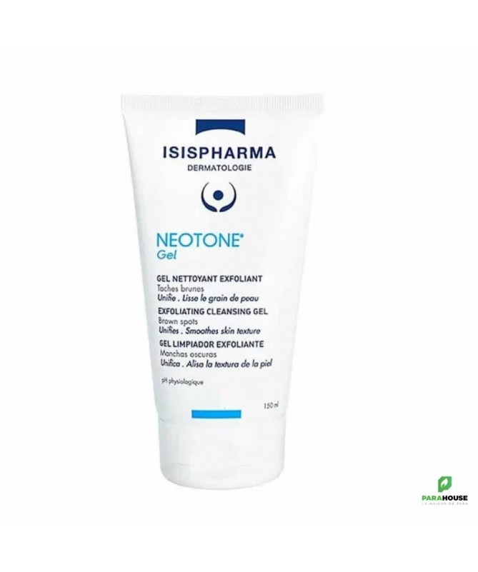 ISISPHARMA NEOTONE GEL NETTOYANT EXFOLIANT 150ML Isispharma gel nettoyant permet d'avoir un teint unifié et éclatant. L’apparition de taches brunes sur le visage peuvent rendre votre teint terne, irrégulier et fatigué... Pour éviter cela, il est important de nettoyer votre peau avec un soin d'hygiène adapté. Le gel nettoyant et exfoliant de la gamme NEOTONE nettoie la peau en profondeur pour retrouver un teint unifié et apporte une sensation de fraîcheur au quotidien. Il est enrichi en 5 actifs puissants aux propriétés exfoliantes et éclaircissantes pour contribuer à réduire les taches, et améliorer l’homogénéité du teint Des billes exfoliantes naturelles, associées à des AHA comme l’acide glycolique, l’acide salicylique et l’acide ascorbique pour exfolier, lisser le grain de peau et stimuler le renouvellement cellulaire L’extrait de réglisse qui contribue à réduire les taches pigmentaires et à unifier le teint Des agents hydratants pour apporter douceur à la peau Les bienfaits de NEOTONE Gel nettoyant : Une action nettoyante efficace grâce aux billes exfoliantes naturelles ; Une efficacité prouvée grâce à une association optimale de 5 principes actifs qui réduisent les taches brunes, unifient le teint et stimulent le renouvellement cellulaire ; Un soin testé sous contrôle dermatologique, adapté aux peaux sensibles, à utiliser quotidiennement pour nettoyer la peau en profondeur et lui redonner son éclat. Conseils d'utilisation Il est indiqué d'appliquer NEOTONE Gel nettoyant matin et soir sur votre visage et votre cou préalablement humidifiés, en réalisant de légers massages circulaires sur votre peau. Rincez abondamment à l’eau claire. Pour lutter efficacement contre les taches brunes, il est indiqué de complétez votre routine avec les soins de la gamme NEOTONE. Testé sous contrôle dermatologique, NEOTONE Gel convient aux peaux sensibles et permet de nettoyer la peau en douceur pour retrouver un teint unifié et éclatant. Composition : Formule INCI : Aqua (Water), Homosalate, Dicaprylyl Carbonate, Butyloctyl Salicylate, Methylene Bis-Benzotriazolyl Tetramethylbutylphenol [Nano], Caprylic/Capric Triglyceride, Butyl Methoxydibenzoylmethane, Diisopropyl Adipate, Ethylhexyl Methoxycrylene, Niacinamide , Steareth-21, Bis-Ethylhexyloxyphenol Methoxyphenyl Triazine, Styrene/Acrylates Copolymer, Glyceryl Stearate, Peg-100 Stearate, 1,2-Hexanediol, Silica, Glycerin, Trimethoxybenzyl Acetylsinapate, Decyl Glucoside, Vp/Eicosene Copolymer, Xanthan Gum, Ethylhexylglycerin, Hydroxyethyl Acrylate/Sodium Acryloyldimethyl Taurate Copolymer, Parfum (Fragrance), Chlorphenesin, Squalane, Peg-8 Laurate, Sodium Levulinate, Citric Acid, Stearalkonium Hectorite, Sodium Anisate, Polysorbate 60, Melanin, Biosaccharide Gum-4, Propylene Glycol, Propylene Carbonate, Pentylene Glycol, Sorbitan Isostearate, Bentonite, Glycyrrhiza Glabra (Licorice) Root Extract, Diacetyl Boldine, Tocopherol, Glycine Soja (Soybean) Oi