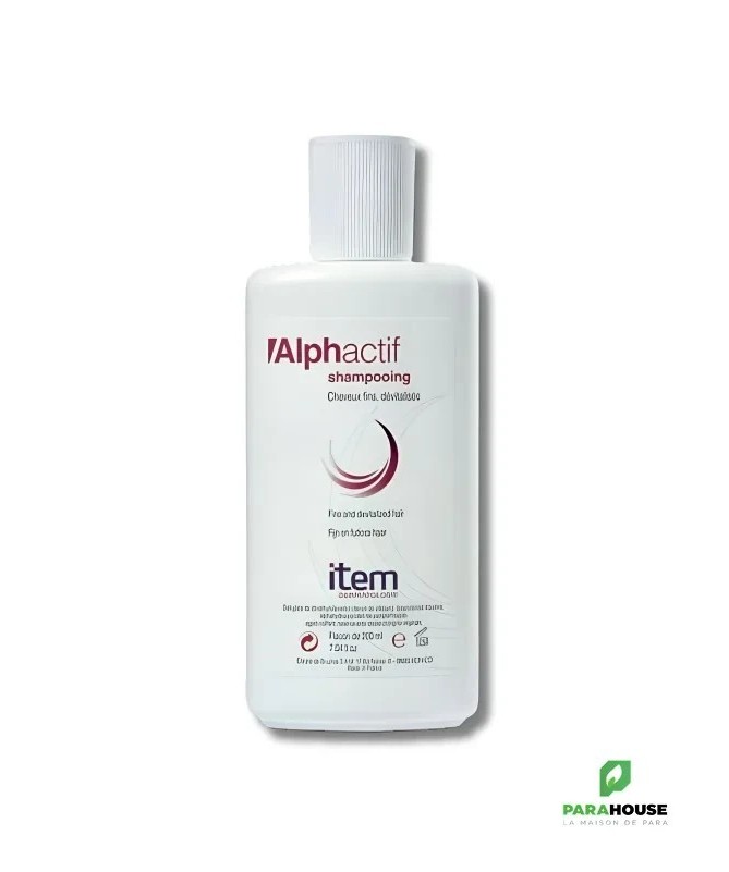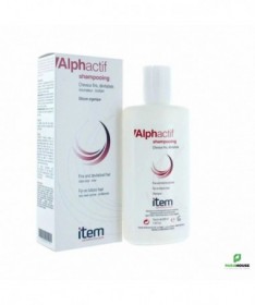 ITEM ALPHACTIF SHAMPOOING FORTIFIANT 200ML ITEM ALPHACTIF est un Soin fortifiant et activateur, il est particulièrement recommandé pour les cheveux dévitalisés et cuirs chevelus anémiés qui nécessitent une hygiène spécifique avant qu'une chute de cheveux ne s'installe. En cas de chute de cheveux plus sévère, s'utilise en complément d'hygiène de la lotion anti-chute ALPHACTIF. Hygiène des cheveux avec cuirs chevelus dévitalisés qui nécessitent un soin spécifique avant qu'une chute de cheveux plus sévère ne s'installe. Complément et relais d'un soin anti-chute. Liquide épais, incolore, agréablement parfumé. Bon pouvoir moussant. Indications Soin capillaire préventif active, tonifie, restructure le cheveu affaibli. Cheveux dévitalisés Conseils d'utilisation: Il est recommadé d'utiliser en relais d'Alphactif lotion antichute ou dès qu'une « faiblesse » capillaire est ressentie. Base lavante qui permet une utilisation quotidienne si nécessaire. Pour optimiser les effets du shampooing, laisser agir quelques minutes avant de rincer.