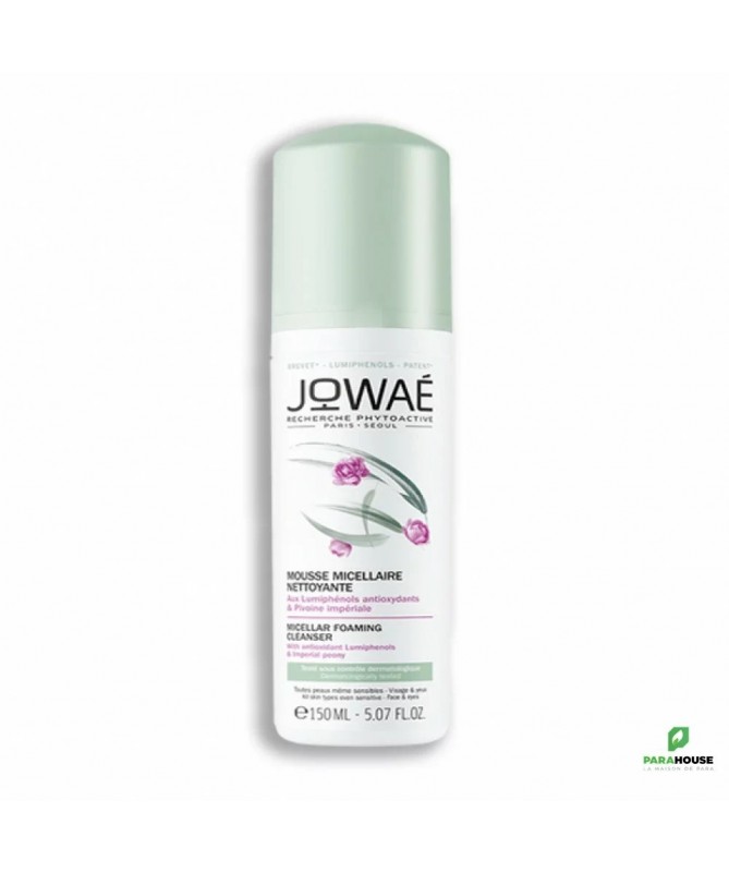JOWAE MOUSSE MICELLAIRE NETTOYANTE 150ML JOWAE MOUSSE MICELLAIRE vous offre un soin doux et efficace pour une peau nette, démaquillée et confortable. Elle contient des Lumiphénols, reconnus pour leur action antioxydante et une Pivoine Impériale qui apporte à la peau éclat et fraîcheur. Sa formule enrichie en plantes détoxifiantes agit directement sur les impuretés et les particules de pollution sans dessécher ni irriter la peau. La peau est propre et confortable. Le teint est frais et lumineux. JOWAE MOUSSE MICELLAIRE convient aux peaux même sensibles. Visage et yeux. Testée cliniquement sous contrôle dermatologique et ophtalmologique. Convient également aux peaux sensibles. Ne dessèche pas la peau. Peau parfaitement nettoyée : 100% Particules de pollution éliminées : 90% Peau douce et confortable: 90% Composition : Actifs : - Lumiphénols antioxydants - Pivoine impériale - Glycérine végétale - Saponins végétaux INGREDIENTS : AQUA/WATER/EAU. SODIUM LAURYL GLUCOSE CARBOXYLATE. LAURYL GLUCOSIDE. GLYCERIN. SODIUM CITRATE. CITRIC ACID. PARFUM/FRAGRANCE. POLYQUATERNIUM-10. ACACIA CONCINNA FRUIT EXTRACT. COCO-GLUCOSIDE. GLYCERYL OLEATE. SODIUM SALICYLATE. SODIUM BENZOATE. SODIUM PHYTATE. SORBIC ACID. GYPSOPHILA PANICULATA ROOT EXTRACT. SAPONINS. POTASSIUM SORBATE. PAEONIA OFFICINALIS FLOWER EXTRACT. SEMPERVIVUM TECTORUM EXTRACT. TOCOPHEROL. HYDROGENATED PALM GLYCERIDES CITRATE. LECITHIN. ASCORBYL PALMITATE. 1442A. Conseils d'utilisation : Il est conseillé d'appliquer JOWAE MOUSSE MICELLAIRE NETTOYANTE matin et soir sur peau humide. Masser puis rincer.