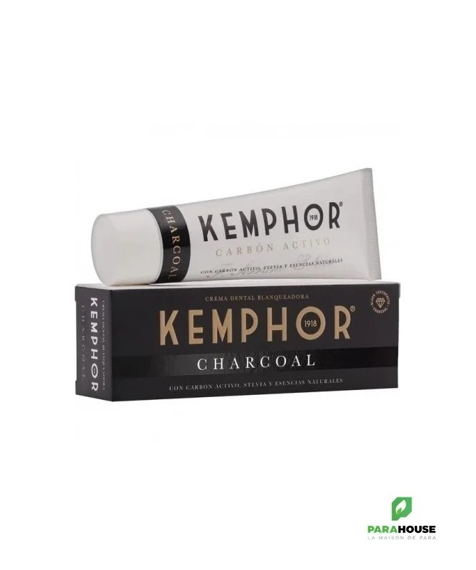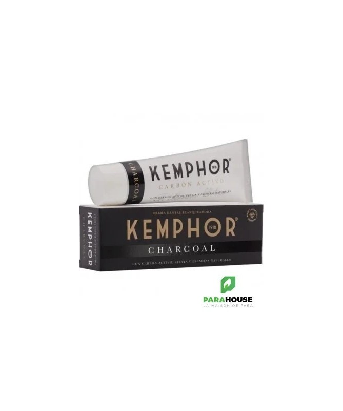 kemphor crème blanchissante pour les dents au charbon de bois Kemphor Charcoal est noir avec une texture agréable. Il se compose de charbon actif de bambou, de stévia, de citrate de zinc et d'essences naturelles, un total de 99% d'ingrédients naturels. Cette formulation innovante agit comme un azurant naturel, les taches sont éliminées par un système d'absorption et ne sont que légèrement abrasives. La combinaison unique d'ingrédients garantit un nettoyage complet et efficace de toute la bouche. son action blanchissante est renforcée par le pyrophosphate qui élimine en douceur les taches et redonne efficacement dents leurs blancheurs naturelles. contient 1450 ppm