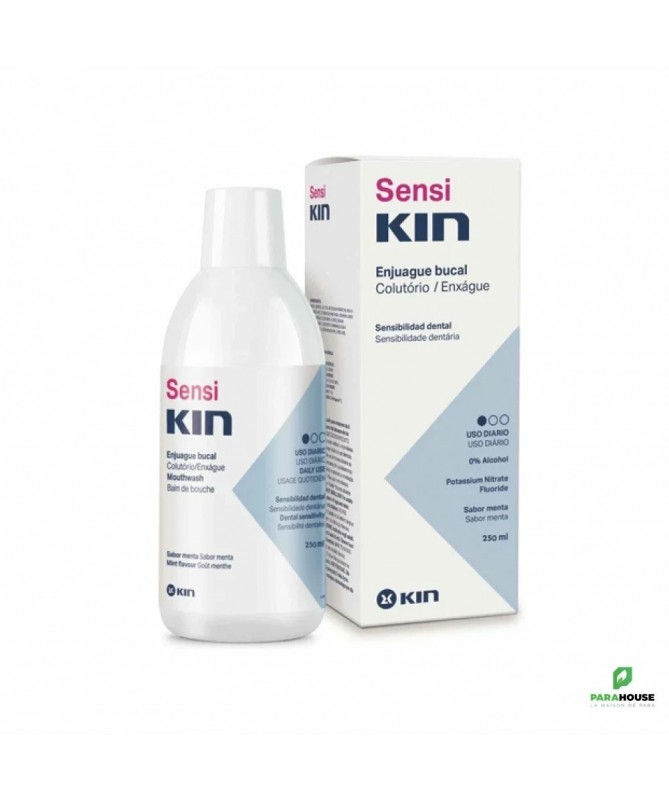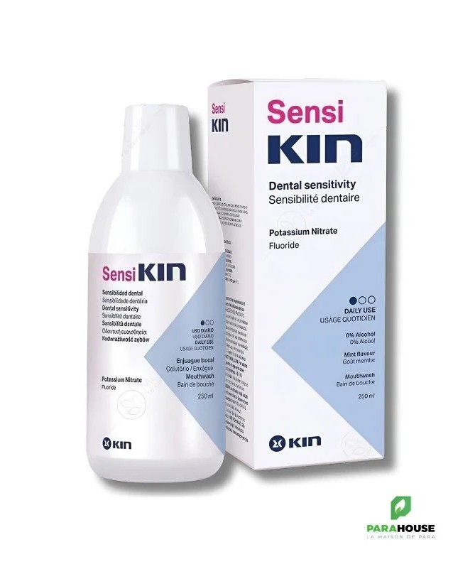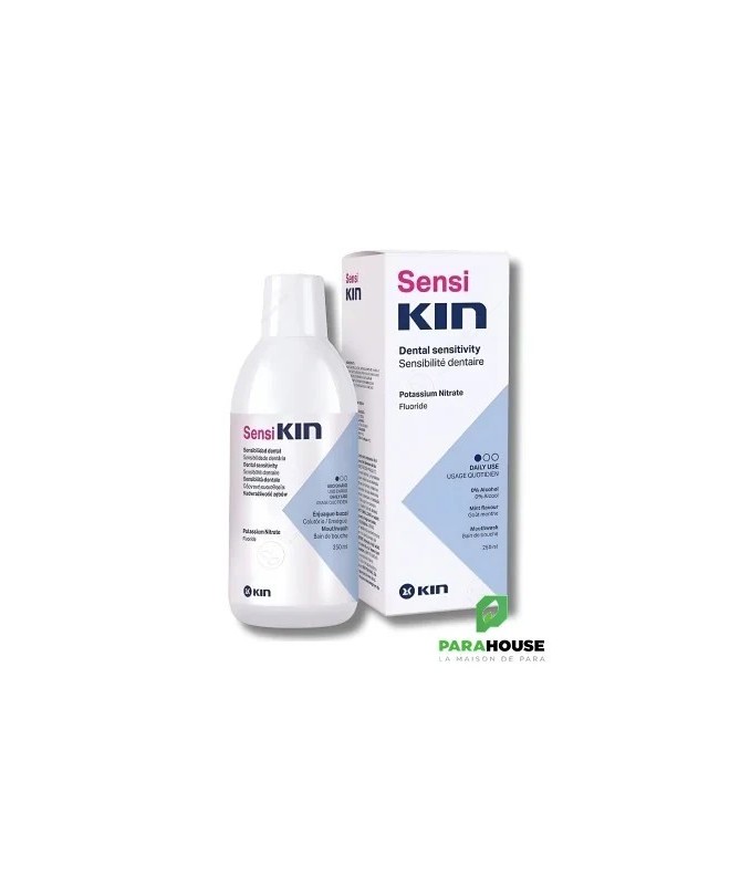 KIN SensiKIN Bain de Bouche 250ML KIN SensiKIN Bain de Bouche est spécialement formulé pour soulager la sensibilité dentaire, qui peut être gênante lors de la consommation d'aliments et de boissons chaudes ou froides, pendant les traitements de blanchiment, etc. En outre, en raison de cette gêne, il est fréquent que le brossage ne soit pas effectué correctement, ce qui augmente le risque d'autres troubles bucco-dentaires. SensiKIN Bain de Bouche aide à éliminer la plaque bactérienne et à désensibiliser les nerfs de la pulpe dentaire, grâce à sa formule au nitrate de potassium, soulageant ainsi la sensibilité et permettant une bonne hygiène buccale. KIN SensiKIN Bain de Bouche pécialement formulé pour aider : Soulager la sensibilité des dents. Prévenir l'apparition de caries, en contrôlant la plaque dentaire. Maintenir des gencives saines. Composition : Nitrate de potassium: 5,00% Fluorure de sodium: 1450 ppm F- Provitamine B5 Acétate de vitamine E Conseils d'utilisation : Il est recommandé de se rincer avec SensiKIN Bain de Bouche deux fois par jour, une fois le matin et une fois le soir. Après le brossage, versez 10 à 15 ml de bain de bouche non dilué dans un verre. Rincez pendant une minute, en veillant à ce que le bain de bouche atteigne tous les coins de votre bouche, puis recrachez-le. N'oubliez pas que le bain de bouche ne doit pas être avalé. Il est conseillé de ne pas manger ni boire pendant au moins une demi-heure après l'utilisation. Tenir hors de portée des enfants. Ne pas avaler. Sans gluten.