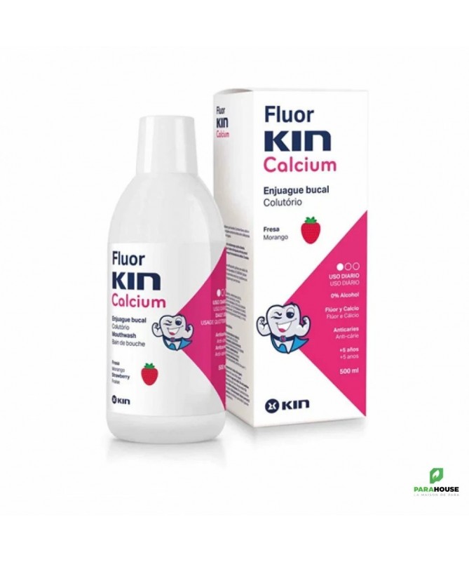 KIN FLUORKIN CALCUIM BAIN DE BOUCHE 500ML KIN FLUORKIN CALCUIM BAIN DE BOUCHE prévient la carie dentaire dès l'éruption des premières dents. Conçu pour les enfants de plus de 5 ans, le bain de bouche FluorKIN Calcium au doux goût de fraise est très agréable et permet d'intégrer le rinçage dans la routine quotidienne. Il est également le complément idéal du brossage des dents car il contribue à la prévention des caries et du biofilm dentaire. Composition : Monofluorophosphate de sodium : 224 ppm F- Glycérophosphate de calcium Conseils d'utilistion : Avant de se coucher et après s'être brossé les dents avec le dentifrice FluorKIN Calcium, il faut effectuer un rinçage quotidien. Versez 10 à 15 ml de bain de bouche non dilué dans un verre. Rincez pendant une minute, en veillant à ce que le bain de bouche atteigne tous les coins de votre bouche, puis recrachez-le. N'oubliez pas que le bain de bouche ne doit pas être avalé. Il est conseillé de ne pas manger ni boire pendant au moins une demi-heure après l'utilisation. Ne pas utiliser chez les enfants de moins de 5 ans. Ne pas avaler. Sans gluten