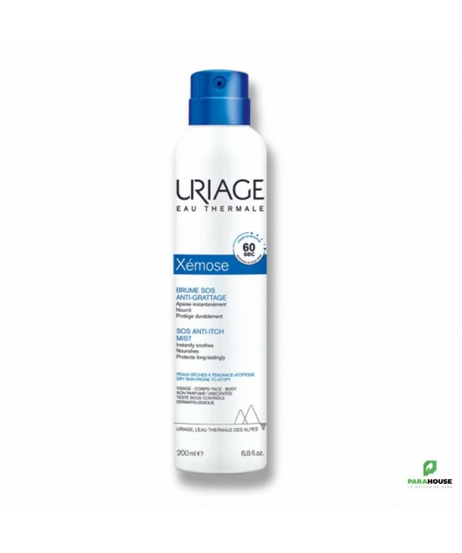 Uriage Xemose Brume SOS Anti Grattage 200ML | Anti-grattage - Anti-sécheresse - Anti-récidive Uriage Xemose Brume SOS Anti Grattage est une brume fraiche apaisante et hydratante qui agit rapidement sur la peau en soulageant les irritations et les démangeaisons. Elle permet aussi de nourrir et protéger la peau, pour mettre fin aux sensations de grattage qui peut causer des irritations et des liséons. URIAGE Brume SOS doit son efficacité anti-grattage instantanée et son pouvoir de protection et d'hydratation à la présence de l'eau thermale d'Uriage, de la glycérine, de la beurre de Karité dans sa formule. Brume SOS Anti Grattage est destinée aux peaux sèches à tendance atopique et peut etre utilisé pour les adultes, les bébés et les enfants. Apaise en moins de 60 secondes :Haute efficacité anti-grattage instantanée - Utilisation pratique et ludique Nourrit Intensément : 10% Beurre de Karité + Huile d’Illipé pour une nutrition intense Protège durablement : Action anti-récidive 24H -Confort durable : Texture au fini doux et confortable Composition : Ingrédients : AQUA (WATER, EAU), GLYCERIN, DICAPRYLYL ETHER, 1,2-HEXANEDIOL, CETEARETH-12, CETEARYL ALCOHOL, BRASSICA CAMPESTRIS (RAPESEED) STEROLS, CHLORPHENESIN, O-CYMEN-5-OL, TOCOPHERYL ACETATE, RASPBERRY SEED OIL/PALM OIL AMINOPROPANEDIOL ESTERS, SHOREA STENOPTERA SEED BUTTERBUTYROSPERMUM PARKII (SHEA) BUTTER, HYDROGENATED POLYDECENE, SQUALANE, CETEARETH-20, CETEARYL ISONONANOATE, GLYCERYL STEARATE, BUTYLENE GLYCOL, CITRIC ACID, ASIATICOSIDE, PHYTOSPHINGOSINE, BORAGE SEED OIL AMINOPROPANEDIOL AMIDES, TOCOPHEROL. Conseils d'utilisation : Il est conseillé d'utiliser URIAGE XÉMOSE Brume SOS dès que nécessaire et d'éviter le contact avec les yeux.
