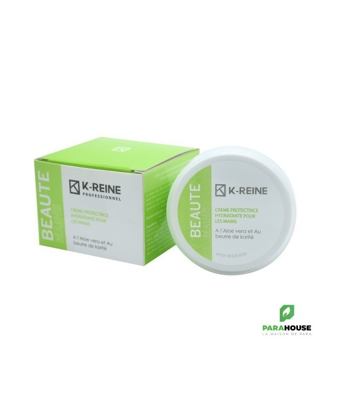 Crème protectrice hydratante pour les mains A l'Aloe Vera et Au beurre de karitéLa crème extra riche pour les mains k-reine à la texture exceptionnelle-ment riche et onctueuse protège, nourrit et soulage les mains les plus sèches et abîmés. L'action hydratante d'aloe vera combinée aux vertus réparatrices de beurre de karité apporte aux mains une sensation immédiate de confort et de souplesse.Conseil d'utilisation :appliquer matin et soir en massant légèrement les mains, des poignets jusqu'au bout des ongles
