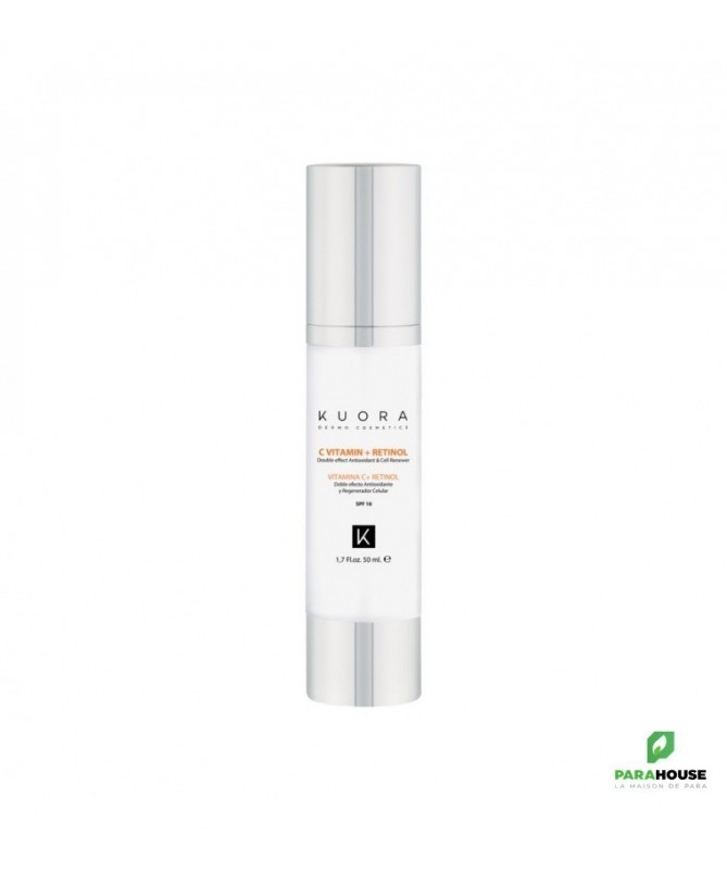 KUORA SERUM Vitamine C + Retinol 50ML KUORA SERUM Vitamine C + Retinol est un sérum aui permet de proteger la peau et la revitaliser. Il sublime l'éclat et amélior l'apparence de la peau en réduisant les rides et les ridules. La vitamine C est un puissant antioxydant, qui clarifie et unifie le teint de la peau, la laissant plus élastique et lumineuse. Le rétinol renouvelle la peau de l'intérieur, lisse visiblement et atténue les rides. C'est un puissant antioxydant, protège l'ADN de la peau et l'oxydation causée par les radicaux libres, réduit et prévient le photovieillissement et hydrate en profondeur la peau. De plus, le rétinol stimule la production de collagène en augmentant la densité du derme. Réduit l'hyperpigmentation, restaure les niveaux de vitamine A diminués par le rayonnement solaire et augmente la synthèse d'acide hyaluronique, améliorant la structure de la peau. Composition : VITAMINE C 5% RETINOL Sans parabens Sans alcool Produit vegan Parfum hypoallergénique Testé dermatologiquement Non comédogène Conseils d'utilisation : Il est conseillé d'appliquer la crème hydratante à la vitamine C et au rétinol sur le visage et le cou nettoyés, matin et soir, avec un léger massage jusqu'à absorption complète.