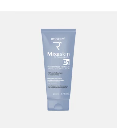 Le gel nettoyant Mixaskin doux et sans sulfate pour la peau normale à mixte débarrasse la peau en profondeur des impuretés. Il favorise le débouchage des pores en douceur et élimine les cellules mortes. Il est nettoyant, adoucissant, apaisant et revitalisant.