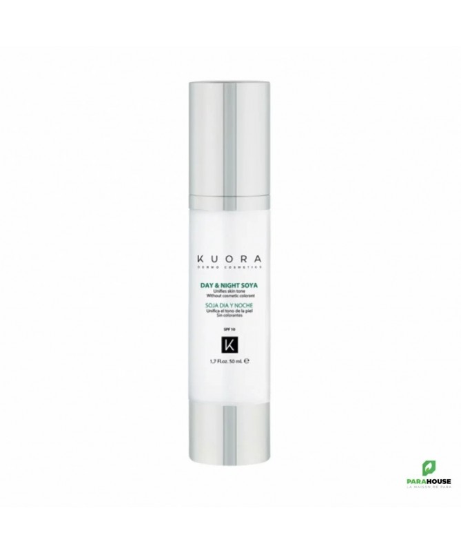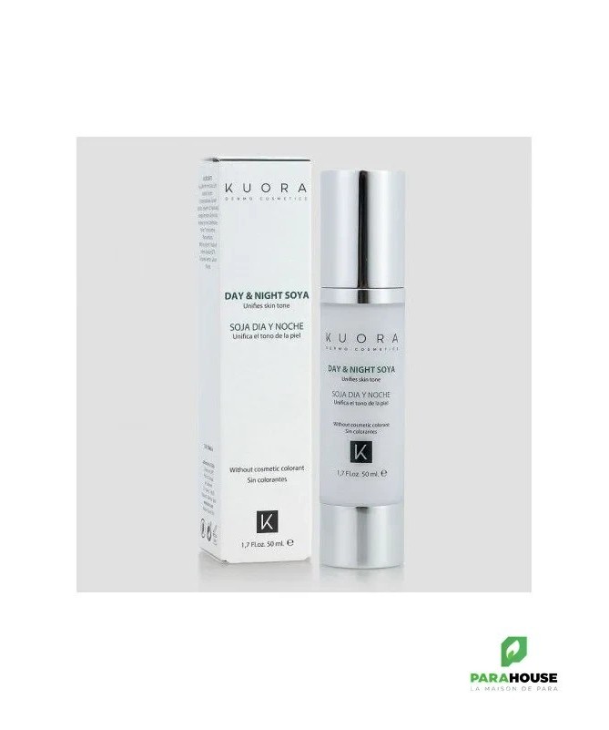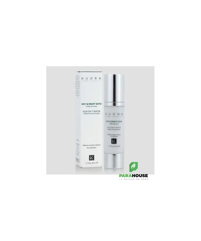 KUORA Day & Night Soya 50ML KUORA Day & Night Soya est spécialement formulée avec une technologie innovante de principes actifs de soja, combinés à des propriétés nourrissantes et hydratantes qui sont facilement absorbées par la peau tout en respirant, en apportant douceur et souplesse. C'est une crème de jour et de nuit pour les peaux matures qui subissent les effets des changements hormonaux car elle combat les manifestations du vieillissement cutané : rides, sécheresse, peau terne et terne à cause d'un manque de renouvellement cellulaire et d'une perte d'uniformité de la couleur. Composition : 5% SOJA (ISOFLAVONES) Propriétés antioxydantes qui protègent la peau de l'action néfaste des radicaux libres. Stimule le renouvellement cellulaire et augmente l'élasticité. VITAMINE E Conseils d'utilisation : Il est conseillé d'appliquer la crème hydratante au soja matin et soir, sur le visage, le cou et le décolleté, parfaitement propres, en massant légèrement jusqu'à absorption complète.