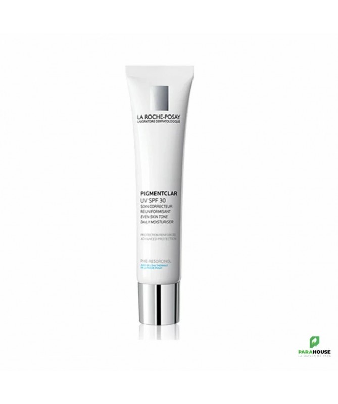 LA ROCHE POSAY PIGMENTCLAR UV SPF 30 40ML LA ROCHE POSAY PIGMENTCLAR UV représente le premier soin protecteur que la Roche posay a conçu. Celui-ci diminue efficacement les taches mais surtout protège la peau de l’apparition des taches qui peuvent apparaître sur le visage. Le teint redevient lumineux dès la première application. Après 4 semaines d’application le teint devient uniforme et les taches disparaissent. Ce soin protecteur protège la peau quotidiennement des taches et du tient gris dont l’essentiels causes sont : la pollution et le stress. Composition : Formule INCI : AQUA/WATER − GLYCERIN − C12−15ALKYLBENZOATE − OCTYLDODECANOL − OCTOCRYLENE − NIACINAMIDE −VINYLDIMETHICONE/METHICONESILSESQUIOXANECROSSPOLYMER − DIMETHICONE − BUTYLMETHOXYDIBENZOYLMETHANE − ALUMINUMSTARCHOCTENYLSUCCINATE − POTASSIUMCETYLPHOSPHATE − TEREPHTHALYLIDENEDICAMPHORSULFONICACID − PEG−100STEARATE − DROMETRIZOLETRISILOXANE − TRIETHANOLAMINE − STEARYLALCOHOL − GLYCERYLSTEARATE − ETHYLHEXYLTRIAZONE − PHENYLETHYLRESORCINOL − POLOXAMER338 − GINKGOBILOBAEXTRACT/GINKGOBILOBALEAFEXTRACT − AMMONIUMPOLYACRYLDIMETHYLTAURAMIDE/AMMONIUMPOLYACRYLOYLDIMETHYLTAURATE − CAPRYLYLGLYCOL − XANTHANGUM − DISODIUMEDTA − CAPRYLOYLSALICYLICACID − FERULICACID − PHENOXYETHANOL − PARFUM/FRAGRANCE Conseils d'utilisation : Utilisez LA ROCHE POSAY PIGMENTCLAR UV de façon quotidienne, et ce, tous les matins. Mettez-en sur votre visage, mains, dos et décolleté mais évitez le contour des yeux.
