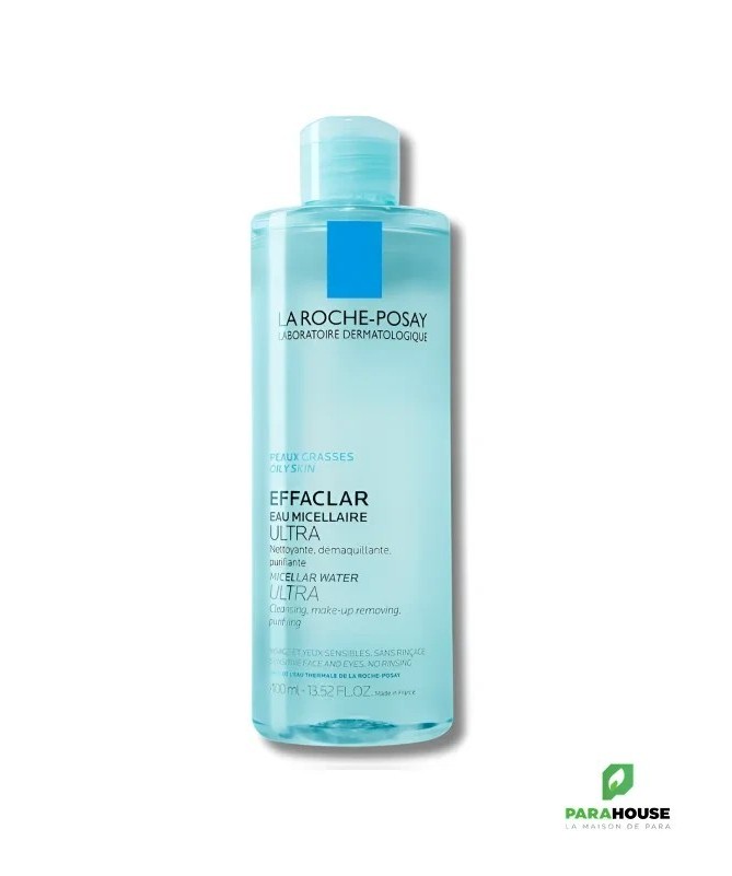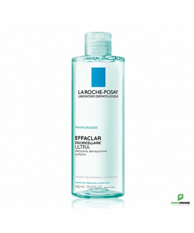 LA ROCHE POSAY EFFACLAR EAU MICELLAIRE ULTRA 400ML LA ROCHE POSAY EFFACLAR EAU MICELLAIRE ULTRA pour les peaux grasses et sensibles nettoie et démaquille le visage, les yeux et les lèvres. Formulée avec un pH physiologique, sans alcool. Avec une formule testée sous contrôle dermatologique et ophtalmologique sur les peaux et les yeux sensibles, LA ROCHE POSAY EFFACLAR EAU MICELLAIRE ULTRA laisse la peau nette et fraîche, sans sensation de dessèchement. PROPRIÉTÉS : PURIFIE LA PEAU : avec l'efficacité d'un gel moussant dans une eau micellaire spécifique aux peaux grasses DEMAQUILLE ET NETTOIE EN DOUCEUR : dans le respect de la sensibilité de la peau, avec l'action apaisante de l'EAU THERMALE DE LA ROCHE-POSAY AIDE A ELIMINER LES IMPURETES : Les micelles associées à la GLYCERINE éliminent 98% du fond de teint au premier coton pour une efficacité démaquillante optimale, sans sensation de dessèchement. EFFICACITÉ EFFICACITE DEMAQUILLANTE OPTIMALE 98% du fond de teint éliminé dès le premier cotton Composition : Formule INCI : Aqua / Water, PEG-7 Caprylic / Capric Glycerides, Poloxamer 124, Poloxamer 184, PEG-6 Caprylic / Capric Glycerides, Glycerin, Polysorbate 80, Zinc PCA, Sodium Hydroxyde, Disodium EDTA, BHT, Myrtrimonium Bromide, Parfum / Fragrance Conseils d'utilisation : Appliquer eau micellaire la roche posay effaclar sur le visage, les yeux et les lèvres à l'aide d'un coton. Sans rinçage