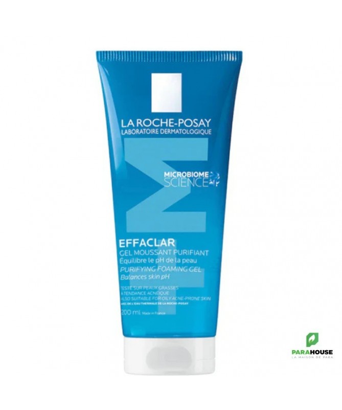 LA ROCHE POSAY EFFACLAR GEL MOUSSANT PURIFIANT TUBE 200ML - Nouvelle Formule la roche posay effaclar gel moussant purifiant ; La nouvelle formule de ce gel moussant intègre la technologie Phylobioma, issue des dernières avancées scientifiques sur le microbiome cutané. Il purifie en douceur, élimine les impuretés et réduit visiblement les imperfections, tout en préservant l’équilibre naturel de la peau grâce à un respect strict du pH physiologique. Sans savon, il est idéal pour les peaux grasses, sensibles et sujettes à l’acné, offrant un nettoyage profond tout en apaisant les épidermes fragiles. Un soin innovant pour une peau nette et respectée. NETTOIE ET PURIFIE LA PEAU : Ce gel moussant nettoie et purifie la peau grâce à ses agents nettoyants ultra doux et au zinc PCA, un actif réputé pour ses propriétés sébo-régulatrices, antibactériennes et anti-inflammatoires. La peau est débarrassée de ses impuretés et de l’excès de sébum. Les imperfections se réduisent progressivement. Désobstrue les pores : Elimine l'excès de sébum en laissant la peau nette et fraîche RESPECTE LES PEAUX SENSIBLES : Les peaux grasses à tendance acnéique peuvent être aussi sensibles. Formulé sans alcool pour éviter d’agresser l’épiderme, notre gel moussant Effaclar se compose d’actifs nettoyants qui respectent la barrière cutanée et de l’eau thermale La Roche-Posay qui apaise la peau. Composition : 609579 111 - INGREDIENTS : AQUA / WATER / EAU • SODIUM LAURETH SULFATE • PEG-8 • COCO-BETAINE • HEXYLENE GLYCOL • SODIUM CHLORIDE • PUNICA GRANATUM PERICARP EXTRACT • ZINC PCA • PEG-120 METHYL GLUCOSE DIOLEATE • SODIUM CITRATE • SODIUM HYDROXIDE • CAPRYLYL GLYCOL • CITRIC ACID • TRISODIUM ETHYLENEDIAMINE DISUCCINATE • MALTODEXTRIN • PENTYLENE GLYCOL • TOCOPHEROL • SODIUM BENZOATE • PHENOXYETHANOL • PARFUM / FRAGRANCE (F.I.L. N70028514/2). Conseils d'utilisation : Il est conseillé de : Prenez un petit peu de la roche posay gel moussant moussez le dans le creux de votre main puis appliquez le sur votre visage en essayant de masser un peu. Une fois vous avez recouvert tout votre visage, rincez abondamment avec de l’eau. Pour un effet rapide et visible utilisez ce gel moussant le matin et le soir.