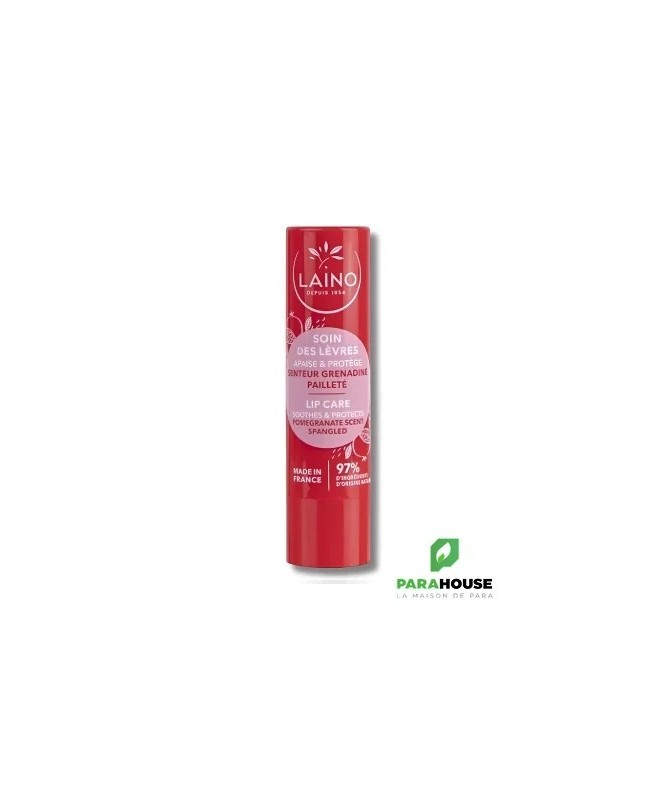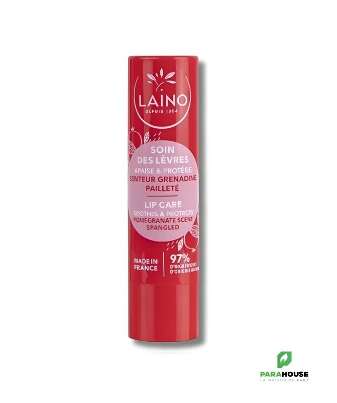 LAINO Soin des lèvres pailleté – senteur Grenadine Laino soin des Lèvres fragilisées, un soin pailleté à la senteur grenadine. Ce soin des lèvres Laino à la texture fondante pare vos lèvres fragilisées d’un soin pailleté à la senteur grenadine. Le complexe phyto-actif d‘huiles végétales, de cire d’abeille et de beurre de karité laisse un film protecteur sur les lèvres et les apaise. Résultats : les lèvres sont soulagées, réparées et adoucies. COMPOSITION : RICINUS COMMUNIS (CASTOR) SEED OIL, CAPRYLIC/CAPRIC TRIGLYCERIDE, CETYL PALMITATE, CERA ALBA (BEESWAX) / CIRE D'ABEILLE, BUTYROSPERMUM PARKII (SHEA) BUTTER, C10-18 TRIGLYCERIDES OLEIC/LINOLEIC/LINOLENIC POLYGLYCERIDES, ISOPROPYL MYRISTATE, COPERNICIA CERIFERA CERA (COPERNICIA CERIFERA (CARNAUBA) WAX) / CIRE DE CARNAUBA, PARFUM (FRAGRANCE), SIMMONDSIA CHINENSIS (JOJOBA) SEED OIL, HELIANTHUS ANNUUS (SUNFLOWER) SEED OIL, HYDROGENATED CASTOR OIL, MICA, CALENDULA OFFICINALIS FLOWER EXTRACT, PRUNUS ARMENIACA (APRICOT) KERNEL OIL, TOCOPHEROL, CI 77891 (TITANIUM DIOXIDE), CI 15850 (RED 6), CI 45410 (RED 28 LAKE). CONSEILS D'UTILISATION Il est conseillé d'Appliquer LAINO STICK A LÈVRES sur les lèvres.
