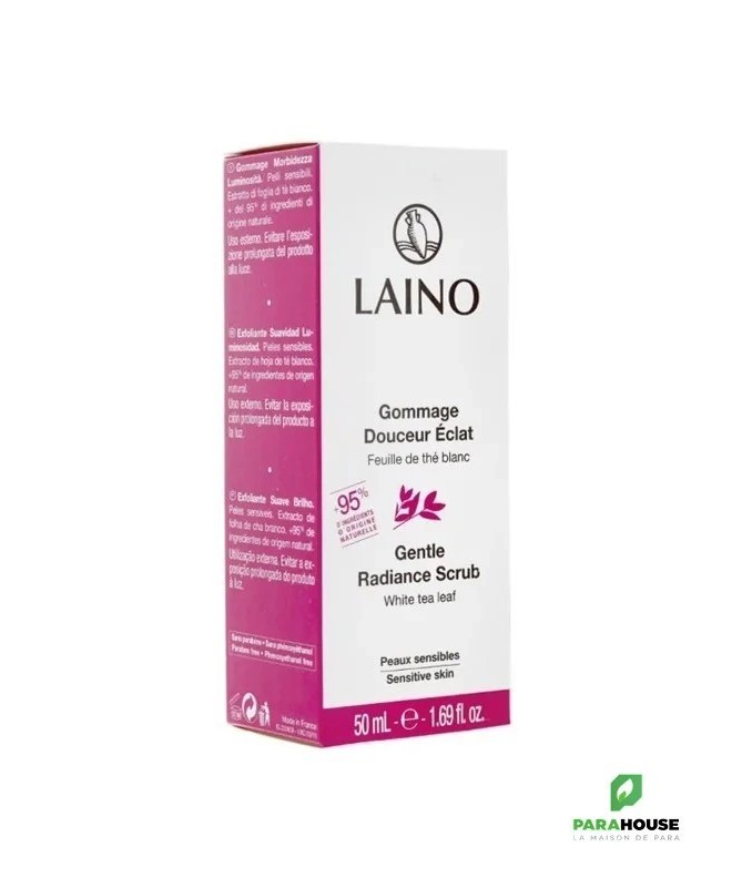 Le gommage Douceur Eclat de LAINO est élaboré pour les peaux sensibles en quête de naturalité. Les perles de jojoba et la poudre de noyaux d'olive exercent une exfoliation mécanique des cellules mortes et éliminent les impuretés incrustées, tout en faisant profiter la peau de leurs propriétés nourrissantes. Douce, propre et nette, la peau est prête à recevoir un soin ou à révéler tout son éclat à l'état pur. Ses principes actifs : - Perles de Jojoba : exfoliant et révélateur d'éclat - Poudre de noyaux d'Olive : exfoliant - Extrait de Feuilles de Thé Blanc : source d'éclat en protégeant contre la fatigue, le stress et la pollution. Sans parabens. Hypoallergénique. Testée sous contrôle dermatologique.
