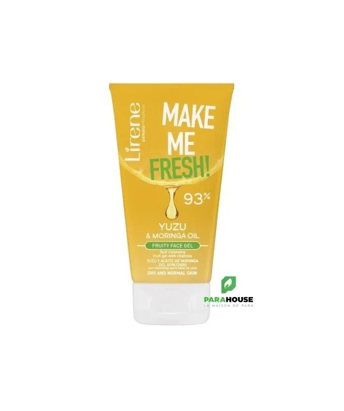 LIRENE MAKE ME FRESH GEL NETTOYANT 150ML LIRENE MAKE ME FRESH GEL NETTOYANT nettoie en profondeur la peau des impuretés, lui donnant une douceur veloutée. Contient de l'extrait de yuzu et de l'huile de moringa pour nourrir et hydrater en profondeur. La peau retrouve instantanément son éclat naturel et sain. Recommandé pour tous les types de peaux, particulièrement sèches et normales. Composition : Aqua (water), cocamidopropyl betaine, polyacrylate crosspolymer-6, coco-glucoside, glycerin, PEG-7 glyceryl cocoate, polysorbate 20, hydroxyacetophenone, sodium phytate, moringa oleifera seed oil, ethylhexylglycerin saccharide isomerate t-butyl alcohol, butylene glycol , citrus junos fruit extract, citric acid, sodium citrate, tocopherol, phenoxyethanol, parfum (fragrance), CI19140 (FD&C yellow no. 5), CI16035 (FD&C red no. 40). Conseils d'utilisation : Appliquez une noisette de LIRENE MAKE ME FRESH GEL NETTOYANT sur la paume de vos mains ou sur un coton et lavez votre visage. Laver à l'eau tiède. Utilisez ensuite votre tonique et votre crème Lirene préférés. LIRENE MAKE ME FRESH GEL NETTOYANT doit être utilisé matin et soir.