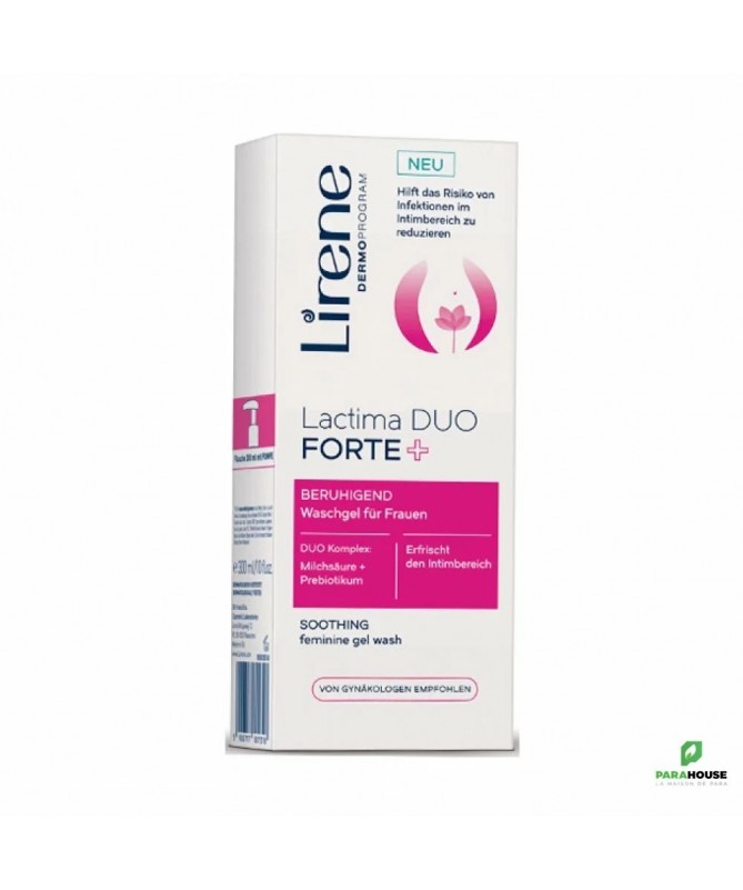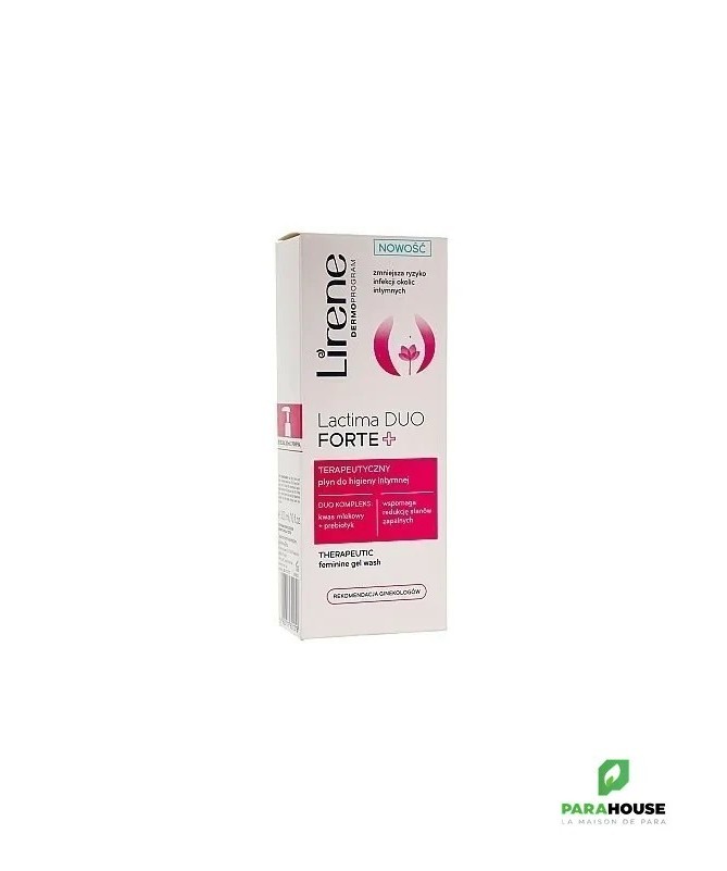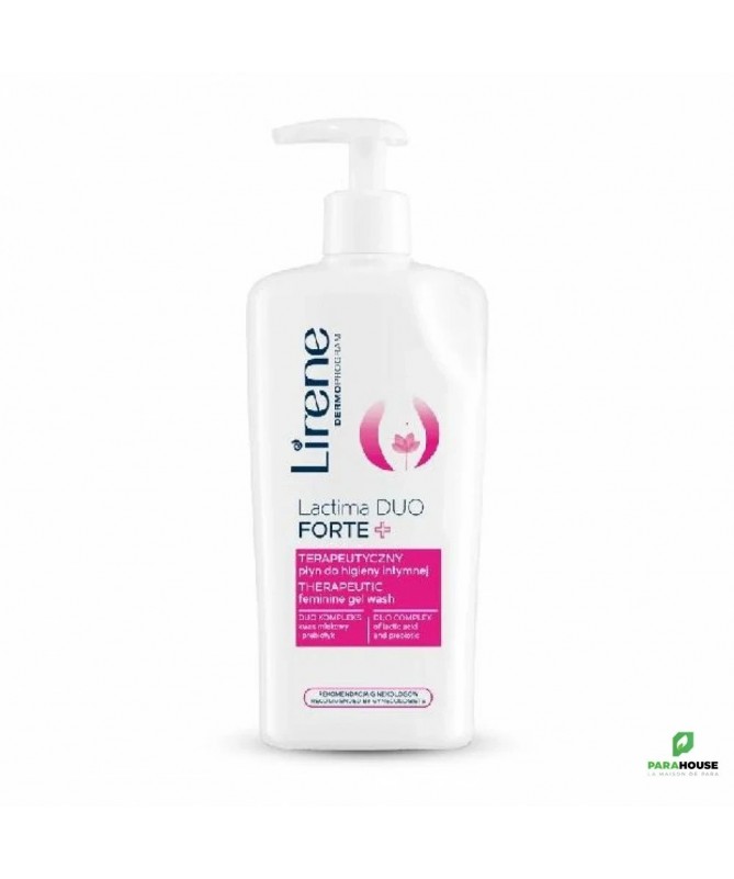 LIRENE LACTIMA DUO FORTE+ Gel Intime 300ML LIRENE LACTIMA DUO FORTE Gel Intime a une formule spécialement conçue pour le nettoyage et le soin quotidien de la zone intime féminine sujette aux irritations et aux infections. C'était un effet nettoyant thérapeutique et contient un double complexe innovant qui comprend de l'acide lactique et des prébiotiques : contribue à la réduction de l'inflammation et des rougeurs. Le prébiotique naturel contenu dans la formule stimule la croissance de la microflore bactérienne physiologique qui aide à calmer les irritations et à soulager les démangeaisons et les picotements. Il offre une protection durable contre les irritations récurrentes et réduit le risque de développer des infections dans la zone intime. L'acide lactique aide à rétablir le pH naturel de la zone intime, assurant une protection antifongique et un équilibre microbien. nettoie et rafraîchit facilement la zone intime, offrant un confort qui dure toute la journée. En raison des propriétés hydratantes de la glycérine, elle prévient le dessèchement excessif de la muqueuse. LIRENE LACTIMA DUO FORTE ne contient pas de savon, de colorants ou de parabènes, il est exceptionnellement doux et sans danger pour la peau. LIRENE LACTIMA DUO FORTE Gel Intime est riche en : L'acide lactique aide à rétablir le pH naturel de la zone intime, assurant une protection antifongique et un équilibre microbien. L'inuline stimule la croissance de la microflore bactérienne physiologique qui aide à calmer les irritations et à soulager les démangeaisons et les brûlures. Il offre une protection durable contre les irritations récurrentes et réduit le risque de développer des infections dans la zone intime. L'urée retient l'hydratation dans les tissus, augmentant l'efficacité des produits cosmétiques. De plus, l'urée augmente la quantité d'eau dans l'épiderme. Un autre effet de l'urée dans les cosmétiques sur la peau est qu'elle permet à d'autres produits chimiques contenus dans les cosmétiques de pénétrer profondément dans la peau. La glycérine a de très bonnes propriétés hydratantes et élimine les cellules mortes grâce à l'apport de protéines dans ce processus. Les protéines sont chargées d'organiser les cellules ensemble et d'empêcher la formation de nouvelles cellules. Composition : Aqua ( Water ), Sodium Laureth Sulfate, Cocamidopropyl Betaine, Glycerin, PEG-18 Glyceryl Oleate / Cocoate, Lactic Acid, Disodium EDTA, Styrene/Acrylates Copolymer, Disodium Ricinoleamido MEA-Sufosuccinate, Inulin, PEG-129 Methyl Glucose Trioleate, Propylene Glycol, Alpha-Glucan Oligosaccharide, Diazolidinyl Urea, Sodium Benzoate, Potassium Sorbate, Parfum ( Fragrance ) Conseils d'utilisation : Laver la zone intime en appliquant une petite quantité de LIRENE LACTIMA DUO FORTE sur peau humide. Rincez abondamment. Pour usage externe uniquement.