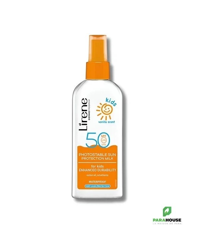 LIRENE SUN KIDS LAIT PROTECTEUR ENFANTS SPF50 150ML LIRENE SUN KIDS LOTION PROTECTRICE ENFANTS SPF50 possède un système de filtres UVA et UVB photostables qui protège des coups de soleil en absorbant les rayons et en bloquant leurs effets. La lotion renforce les mécanismes de défense naturels contre les rayons UV, et la teneur en vitamine E assure une bonne protection antioxydante. L'huile de coton et les émollients hydratent et nourrissent la peau de bébé, l'empêchant de se dessécher. LIRENE SUN KIDS Lotion waterproof à résistance renforcée à l'abrasion minimise les irritations et peut être utilisée dès l'âge de 7 mois . Composition : Aqua (Water), Dibutyl Adipate, Methylene Bis-Benzotriazolyl Tetramethylbutylphenol (nano), Ethylhexyl Salicylate, C12-15 Alkyl Benzoate, Diethylamino Hydroxybenzoyl Hexyl Benzoate, Glycerin, Potassium Cetyl Phosphate, Bis-Ethylhexyloxyphenol Methoxyphenyl Triazine, Titanium Dioxide, Ethylhexyl Triazone, 1,2-Hexanediol, Cetearyl Alcohol, Dimethicone, Allantoin, Hydrolyzed Linseed Extract, Hydroxyacetophenone, Tocopheryl Acetate, Gossypium Herbaceum (Cotton) Seed Oil, Decyl Glucoside, Cetearyl Olivate, Sorbitan Olivate, Acrylates/C10-30 Alkyl Acrylate Crosspolymer, Sodium Phytate, Stearic Acid, Xanthan Gum, Alumina, Propylene Glycol, Sodium Hydroxide, Phenoxyethanol, Parfum (Fragrance), Benzyl Salicylate Conseils d'utilisation: Appliquer la bonne quantité de LIRENE SUN KIDS LOTION sur la peau du corps, de préférence 15 minutes avant l'exposition au soleil. Une exposition excessive au soleil peut poser un risque sérieux pour la santé. Évitez la surexposition ou protégez votre peau avec des filtres élevés lorsque le soleil est le plus fort. Protégez les bébés et les enfants des rayons directs du soleil. Les produits de protection solaire n'offrent pas une protection à 100 %. Afin d'atteindre le niveau de protection souhaité indiqué sur la crème solaire, les produits de protection solaire doivent être appliqués à raison de 2 mg/cm2, ce qui correspond à 6 cuillères à café d'émulsion (environ 36 grammes) sur le corps d'un adulte moyen. Appliquer moins de produit solaire conduit à une protection moindre. Pour maintenir la protection, renouveler l'application toutes les 2 heures, après s'être essuyé, nagé ou avoir transpiré.