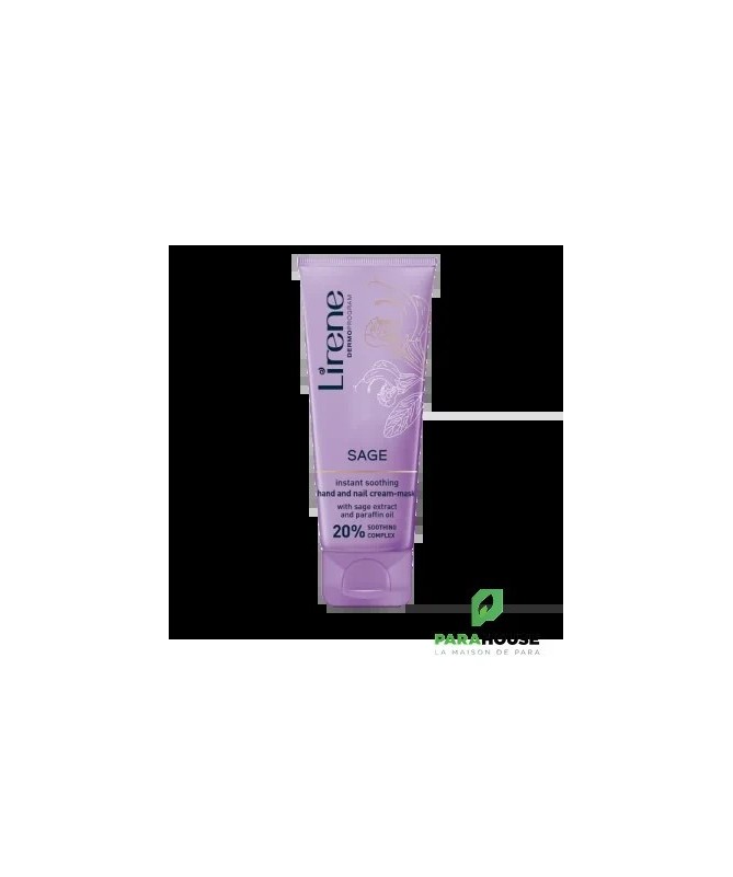 Lirene Masque Creme Mains Appaisant SAUGE 75ML Lirene Masque Creme Mains Appaisant SAUGE pour les mains et les ongles est un soin régénérant pour les peaux très sèches et gercées des mains. Sa formule unique avec 20% de complexe apaisant : Régénère et renouvelle visiblement la peau. Apporte un soulagement immédiat. Élimine la sensation de rugosité et de fissures visibles. Apaise les irritations. De plus, il lisse la peau et redonne aux mains une apparence saine et belle grâce à l'extrait de sauge. Protège la peau et les ongles des facteurs externes, y compris les détergents et renforce la barrière protectrice naturelle qui permet à la peau de s'hydrater et de se régénérer après une seule utilisation, grâce à l'huile de paraffine. Composition : SAUGE (SALVIA OFFICINALIS) ALLANTOINE VITAMINE E BEURRE DE KARITÉ HYALURONATE DE SODIUM