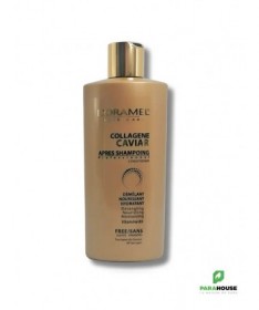 Collagène Caviar Après Shampoing - L'OramelLe soin Collagène Caviar Après Shampoing, enrichi en extrait de caviar et collagène, hydrate et conditionne les cheveux endommagés. Il facilite le démêlage et laisse les cheveux lisses, soyeux et souples.Sa formule riche en huile d'argan et en provitamine B5 nourrit, répare et protège les cheveux. Ce véritable bain de nutrition assure des cheveux brillants et revitalisés.Sans silicone, sans sulfate et sans parabènes, il prolonge l'effet du lissage professionnel et entretient la santé des cheveux.Conseils d'utilisation :Après le shampooing, appliquer sur toute la longueur des cheveux en évitant les racines.Laisser agir quelques minutes pour une hydratation optimale.Utiliser un peigne à dents larges pour démêler.Rincer abondamment.