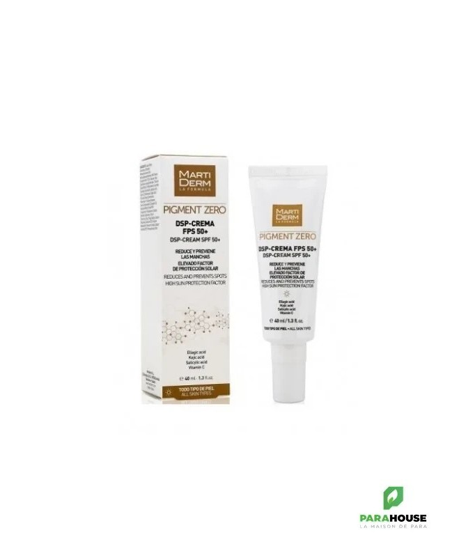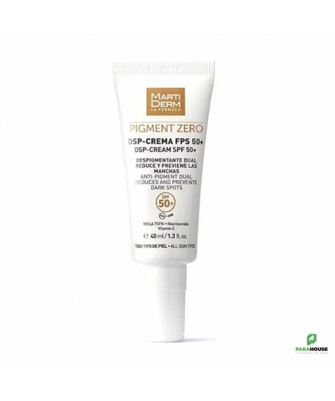 MARTIDERM DSP Crème Dépigmentante SPF50 40ML Martiderm DSP Crème depigmentante de texture légère est une crème douce de trés haute protection solaire spf50, très efficace pour unifier le teint de la peau et éliminer les taches sur le visage. La formule de MARTIDERM pigment zero spf 50 contient des principes depigmentantes qui ont une tolérance cutanée élevée, ce qui en fait un traitement très approprié pour tous les types de peau.L'utilisation quotidienne de la crème Martiderm permet de : Unifier Le teint C'est un traitement dépigmentant ciblé, à n'agir que là où il y a des taches Il prévient et réduit toutes sortes de taches et d'hyperpigmentation Renouvellement cellulaire Fournir la luminosité et la peau claire. MARTIDERM DSP prévient et réduit les bavures, laissant une agréable sensation de confort. Composition : AQUA. OCTOCRYLENE. LE DIOXYDE DE TITANE. ALUMINA. SILICE. POLYACRYLATE DE SODIUM. MÉTHOXYCINNAMATE D'ÉTHYLHEXYLE. STEARATE DE PEG-6. CETETH-20. STEARATE DE GLYCERYL. STEARETH-20. BUTYL METHOXYDIBENZOYLMETHANE. LACTIS PROTEINUM. PROPYLÈNE GLYCOL. L'ACIDE KOJIQUE. MYRISTATE D'ISOPROPYLE. TRIÉTHYLHEXANOINE. ALCOOL CÉTYLIQUE. GLUCOSIDE D'ASCORBYLE. PROTÉINE DE BLÉ HYDROLYSÉE. CHLORURE DE SODIUM. PHENOXYETHANOL. SORBATE DE POTASSIUM. EDTA (ÁCIDO EDÉTICO). ÉTHYLHEXYLLGLYCÉRINE. ACIDE SALICYLIQUE. DIMÉTHICONE. STEARYL DIMETHICONE. L'ACIDE ELLAGIQUE. BENZOATE DE SODIUM. POLYACRYLATE D'HYDROXYDE DE TRANS-POLYMÈRE 6.SODIUM. PARFUM. ACIDE CITRIQUE. LE MÉTABISULFITE DE SODIUM. EDOD DISODIUM. PROPYL GALLATE. BHT. BHA. Conseils d'utilisation : Il est indiqué d'appliquer Martiderm DSP Crème depigmentante la nuit sur le visage et le cou. Masser jusqu’à absorption complète.