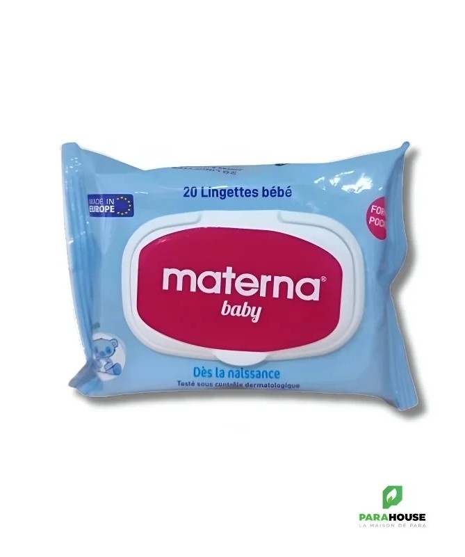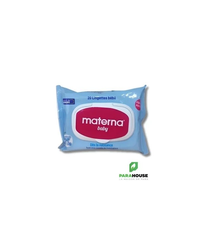 Lingettes Bébé Bleues - Materna Baby (20 pièces)Les lingettesMaterna Baby Bébé Bleusont conçues pour unnettoyage doux, apaisant et efficacede la peau sensible des nourrissons. Douces et résistantes, elles nettoient sans irriter grâce à leurformule hydratante et hypoallergénique, sans alcool. Leur format compact de 20 lingettes est idéal pour une utilisation quotidienne à la maison ou en déplacement.Bénéfices :- Douceur et sécurité :Formulées pour ne pas irriter la peau fragile des bébés.- Apaisantes :Enrichies en agents hydratants et protecteurs.- Pratiques :Format nomade parfait pour les déplacements.- Sans alcool et hypoallergéniques :Convient aux peaux les plus sensibles.Indications :- Nettoyage lors des changes.- Rafraîchissement rapide en déplacement.- Hygiène des mains et du visage.Conseils d'utilisation :- Utilisez une lingette pour nettoyer délicatement la zone souhaitée.- Refermez bien l'emballage après usage pour conserver la fraîcheur des lingettes.- Parfaites pour glisser dans un sac à langer ou un sac à main.