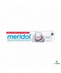 MERIDOL Dentifrice Blancheur 75ML MERIDOL Dentifrice Blancheur combat la cause de l’irritation des gencives, et non seulement les symptômes, pour des dents et des gencives saines au quotidien. Sa formule apaisante agit efficacement et en douceur, comme un baume, tout en gardant des dents et des gencives propres et saines. Les colorations dentaires sont éliminées et la blancheur naturelle des dents est restaurée. Carecteristiques : Aide à prévenir : l’irritation des gencives les saignements occasionnels des gencives la formation de la plaque dentaire les caries les colorations dentaires Unique: la combinaison efficace des ingrédients actifs fluorures d'amines et d'étain fournit une efficacité antibactérienne immédiate et durable Composition : Formule INCI : Aqua, Hydated Silica, Glycerin, Hydroxyethylcellulose, Aroma, Cocamidropyl Betaine, Sodium Gluconate, PEG-3 Tallow Aminopropylamine, Olaflur, Stannous Fluoride, Sodium Saccharin, Hydrochloric Acid, Potassium Hydroxide, Limonene, CI 77891, CI 74160. Conseils d'utilisation : Il est conseillé de se brosser les dents après chaque repas et de consulter régulièrement son dentiste.