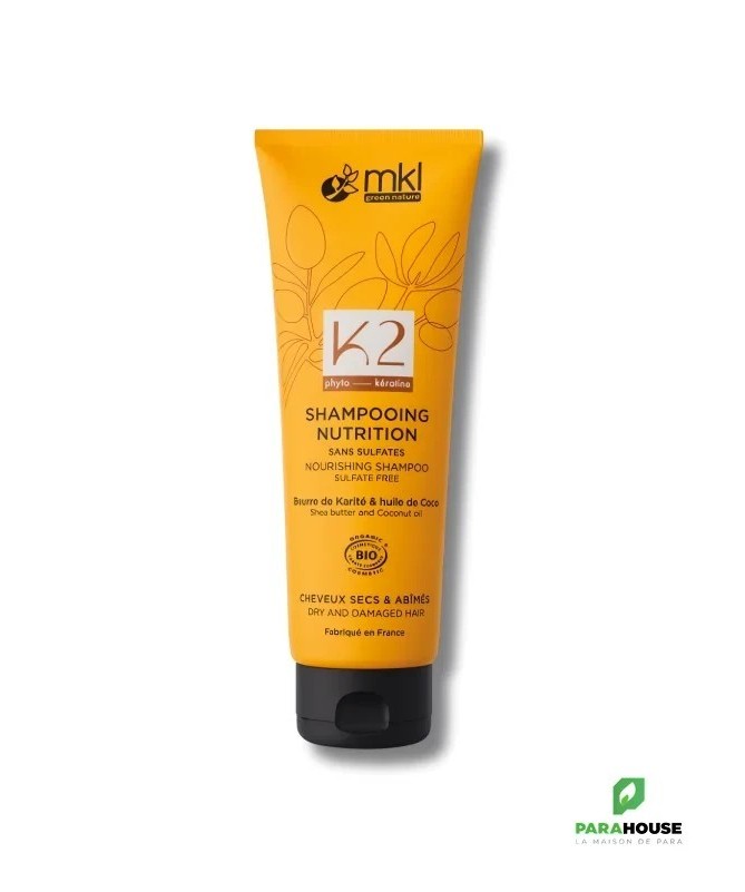 Shampooing Nutrition pour Cheveux Secs et AbîmésLe compagnon idéal pour les cheveux secs, fragilisés ou abîmés. Formulé à 98% d’ingrédients d’origine naturelle et enrichi en phytokératine végétale, il associe la douceur du beurre de karité aux bienfaits des huiles d’argan et de coco bio pour nourrir et revitaliser vos cheveux.Associé au masque et au soin Nutrition, il rend votre chevelure soyeuse, nourrie et pleine de vitalité.IngrédientsAQUA (WATER), DECYL GLUCOSIDE, GLYCERIN, CAPRYLIC/CAPRIC TRIGLYCERIDE, BUTYROSPERMUM PARKII (SHEA) BUTTER*, COCOS NUCIFERA (COCONUT) OIL*, COCO-BETAINE, CETYL ALCOHOL, SODIUM STEAROYL GLUTAMATE, PARFUM (FRAGRANCE), ARGANIA SPINOSA KERNEL OIL*, HYDROLYZED WHEAT PROTEIN, ALOE BARBADENSIS LEAF JUICE POWDER*, XANTHAN GUM, SODIUM BENZOATE, POTASSIUM SORBATE, TOCOPHEROL, CITRIC ACID.*Ingrédients issus de l’agriculture biologique.98% du total est d’ORIGINE NATURELLE.20% du total des ingrédients sont issus de l’AGRICULTURE BIOLOGIQUE.Certifié COSMOS ORGANIC par ECOCERT Greenlife.Conseils d'utilisationAppliquer sur le cuir chevelu et les cheveux. Faire pénétrer, puis mousser et rincer à l’eau claire.À partir de 3 ans. Usage externe. Éviter le contact avec les yeux. En cas de contact, rincer abondamment à l’eau.