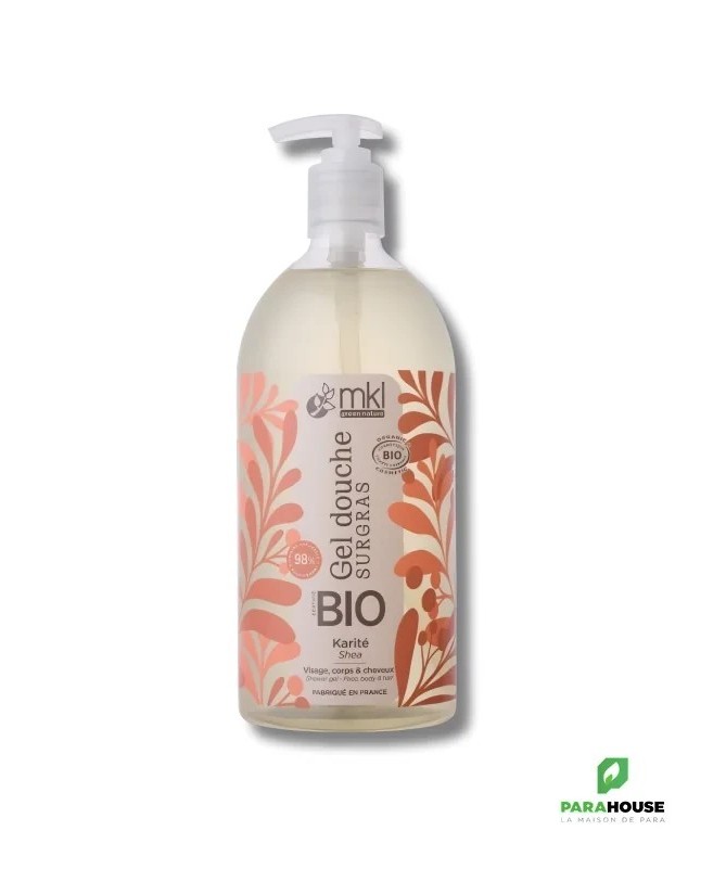 Ce gel douche bio surgras, enrichi d’une base lavante douce d’origine naturelle dérivée de la coco, nettoie délicatement tout en préservant la douceur de la peau. Testé dermatologiquement, il convient à tous les types de peau et est adapté à toute la famille dès 3 ans. Sa texture veloutée et son parfum subtil offrent un moment de plaisir sous la douche.Ingrédients :Aqua (Water), Coco-Glucoside, Sodium Coco-Sulfate, Coco-Betaine, Butyrospermum Parkii (Shea) Butter*, Aloe Barbadensis Leaf Juice Powder*, Argan Oil Polyglyceryl-6 Esters**, Glycerin, Citric Acid, Parfum (Fragrance), Sodium Benzoate, Sodium Gluconate, Glyceryl Oleate, Potassium Sorbate, Limonene, Linalool.*Ingrédients issus de l’agriculture biologique.**Transformé à partir d’ingrédients biologiques.98,7% du total est d’origine naturelle.10% du total des ingrédients sont issus de l’agriculture biologique.COSMOS ORGANIC certifié par ECOCERT Greenlife selon le référentiel COSMOS.Conseils d'utilisation :Faire mousser le gel dans la paume des mains et appliquer par mouvements circulaires sur l’ensemble du visage, du corps et des cheveux. Rincer à l’eau tiède. Usage externe. Éviter le contact avec les yeux et les muqueuses. En cas de contact, rincer abondamment.