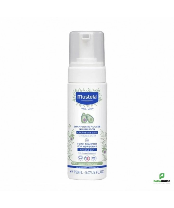 Description :Le Shampoing mousse nourrisson est idéal au quotidien pour laver le cuir chevelu et aider à éliminer les croûtes de lait. Il aide à limiter leur réapparition.Sa formule sans parfum et haute tolérance est composée de 99% d'ingrédients d'origine naturelle. Il peut être utilisé dès la naissance.Au revoir les croûtes de lait ! Le Shampooing mousse nettoie en douceur le cuir chevelu des nourrissons et favorise l'élimination des croûtes de lait. Il aide également à limiter leur réapparition et ne pique pas les yeux.Son secret de fabrication : les polyphénols extraits de l'avocat qui protègent le cuir chevelu du nourrisson.Sécurité et efficacitéPour une sécurité garantie dès la naissance, nos soins sont développés en collaboration avec des professionnels de santé et doivent passer avec succès plus de 450 mesures et tests.Conseils d'utilisation :Pratique, sa texture mousse est facile à appliquer et est particulièrement adaptée au cuir chevelu délicat du nourrisson.Étape 1 - Après avoir laissé agir toute la nuit le soin croûtes de lait Mustela sur le cuir chevelu, appliquer et masser délicatement une dose de shampoing sur les cheveux mouillés.Étape 2 - Laisser agir 1 à 2 minutes.Étape 3 - Rincer soigneusement pour éliminer les croûtes de lait. En cas de contact avec les yeux, rincer abondamment.Composition :AQUA/WATER/EAU, COCO-GLUCOSIDE, POLYGLYCERYL-4 CAPRATE, INULIN, GALACTOARABINAN, CITRIC ACID, SODIUM BENZOATE, PROPANEDIOL, HELIANTHUS ANNUUS (SUNFLOWER) SEED OIL UNSAPONIFIABLES, PERSEA GRATISSIMA (AVOCADO) FRUIT EXTRACT.