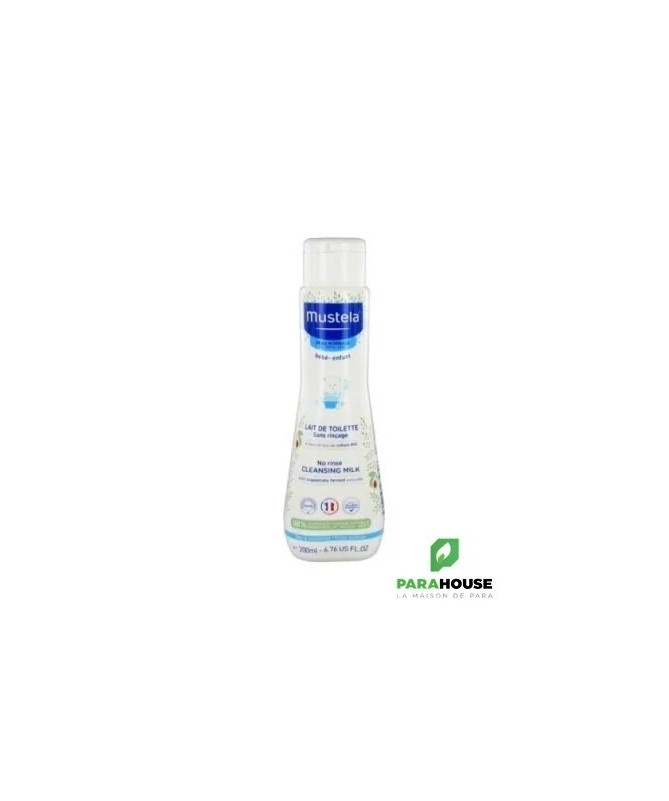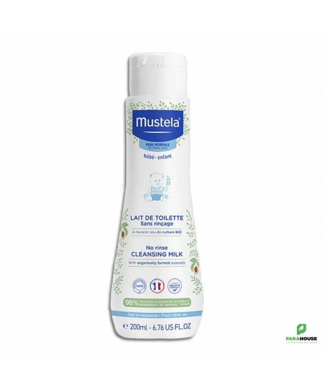 MUSTELA LAIT DE TOILETTE Sans Rinçage 200ML MUSTELA LAIT DE TOILETTE Sans Rinçage : Lait de toilette Nettoie et adoucit Visage et siège MUSTELA LAIT DE TOILETTE est idéal au quotidien pour nettoyer la peau de votre bébé. Son ingrédient actif phare est le Perséose d'avocat®, un actif maison obtenu avec des avocats bio issus de l'économie circulaire. Grâce à ses propriétés, notre lait de toilette renforce la barrière cutanée et protège le capital cellulaire de la peau des bébés. MUSTELA LAIT DE TOILETTE : Nettoie en douceur tout en préservant le film hydrolipidique. Evite le déssèchement cutané. Laisse sur la peau une odeur très agréable. Composition : AQUA WATER EAU, HELIANTHUS ANNUUS (SUNFLOWER) SEED OIL, GLYCERIN, POLYGLYCERYL-3 DISTEARATE, C10-18 TRIGLYCERIDES, GLYCERYL STEARATE SE, CETYL ALCOHOL, 1,2-HEXANEDIOL, GLYCERYL CAPRYLATE, GLYCERYL STEARATE CITRATE, PARFUM (FRAGRANCE), CARBOMER, PERSEA GRATISSIMA (AVOCADO) FRUIT EXTRACT, SODIUM HYDROXIDE. 98% d’ingrédients d’origine naturelle. Conseils d'utilisation : Étape 1 - Appuyer sur la pompe pour déposer du produit sur le coton. Étape 2 - Appliquer le coton imprégné d'eau nettoyante sur le visage et/ou le siège du bébé ou de l'enfant. Étape 3 - Inutile de rincer. Étape 4- Puis jeter votre coton dans la poubelle.