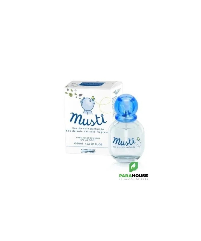 MUSTELA MUSTI EAU DE SOIN PARFUMEE 50ML Musti Eau de soin parfumée de MUSTELA allie une note subtile d’agrumes à la douceur de la rose et du lilas sur un fond délicatement ambré, associée à des extraits de miel et camomille, reconnus pour leurs vertus apaisantes et adoucissantes. Musti allie des notes de fleurs blanches et de muguet à la fraîcheur de la bergamote, sur un fond délicatement boisé. Rehaussées d'extraits de miel et camomille aux vertus adoucissante et apaisante, cette eau procure un véritable instant bien-être et apporte tendresse et fraîcheur. L'eau de senteur Musti parfume la peau délicate des bébés tout en la respectant. Elle peut être utilisée dès la naissance Conseils d'utilisation: MUSTELA MUSTI EAU DE SOIN Peut s’utiliser quotidiennement pour parfumer délicatement les cheveux, le corps et les vêtements. Composition: AQUA/WATER/EAU, CAPRYLYL/CAPRYL GLUCOSIDE, PARFUM (FRAGRANCE), GLYCERIN, SODIUM BENZOATE, BUTYLENE GLYCOL, TARTARIC ACID, 1,2-HEXANEDIOL, CAPRYLYL GLYCOL, TRISODIUM ETHYLENEDIAMINE DISUCCINATE, CHAMOMILLA RECUTITA (MATRICARIA) FLOWER EXTRACT, MEL EXTRACT/HONEY EXTRACT/EXTRAIT DE MIEL. 97% d'ingrédients d'origine naturelle.