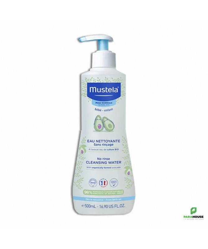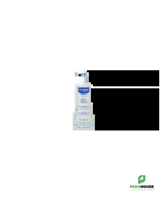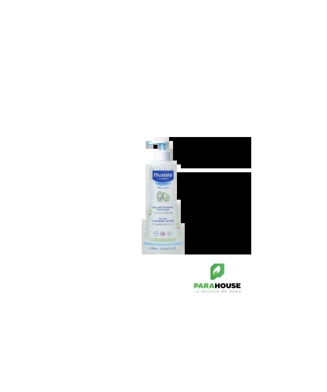 MUSTELA Eau nettoyante sans rinçage 500ML MUSTELA Eau nettoyante sans rinçage est un geste de soin quotidien, sûr et efficace, qui simplifie la routine des parents tout en offrant les meilleurs soins à la peau fragile de bébé. Grâce à sa texture légère et aqueuse, elle élimine parfaitement les impuretés et les petites saletés sans agresser l'épiderme. L'extrait naturel d'Avocat (Perséose®), agit comme un bouclier protecteur pour préserver le capital cellulaire de la peau et maintenir son hydratation naturelle. Ce soin est le partenaire idéal pour les nouveau-nés dès les premiers jours, les enfants, mais aussi les adultes à la peau sensible, réactive ou sujette aux imperfections qui recherchent un nettoyant doux Nettoyage Hautement Efficace : Élimine en un seul geste toutes les impuretés, les traces de lait, les salissures et l'urine. Sans Rinçage & Praticité Absolute : Idéale pour les changes, en voyage, ou pour une toilette rapide. Aucun besoin d'eau, simplifiant la routine. Respect de la Peau Délicate : Enrichie au naturel d'Avocat Perséose®, elle préserve le capital cellulaire et la barrière cutanée de bébé, évitant dessèchement et tiraillements. Composition : AQUA/WATER/EAU, GLYCERIN, SODIUM BENZOATE, PEG-40 HYDROGENATED CASTOR OIL, 1,2-HEXANEDIOL, ALLANTOIN, CAPRYLYL GLYCOL, PARFUM (FRAGRANCE), TARTARIC ACID, SODIUM HYDROXIDE, ALOE BARBADENSIS LEAF JUICE POWDER, PERSEA GRATISSIMA (AVOCADO) FRUIT EXTRACT, PROPYLENE GLYCOL,SAPONARIA OFFICINALIS LEAF/ROOT EXTRACT. Conseils d'utilisation: Son format pompe est particulièrement pratique pour la toilette. Étape 1 - Appuyer sur la pompe pour déposer du produit sur le coton. Étape 2 - Appliquer le coton imprégné d'eau nettoyante sur le visage et/ou le siège du bébé ou de l'enfant. Étape 3 - Inutile de rincer. Étape 4 - Puis jeter votre coton dans la poubelle