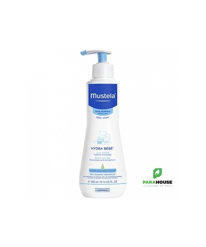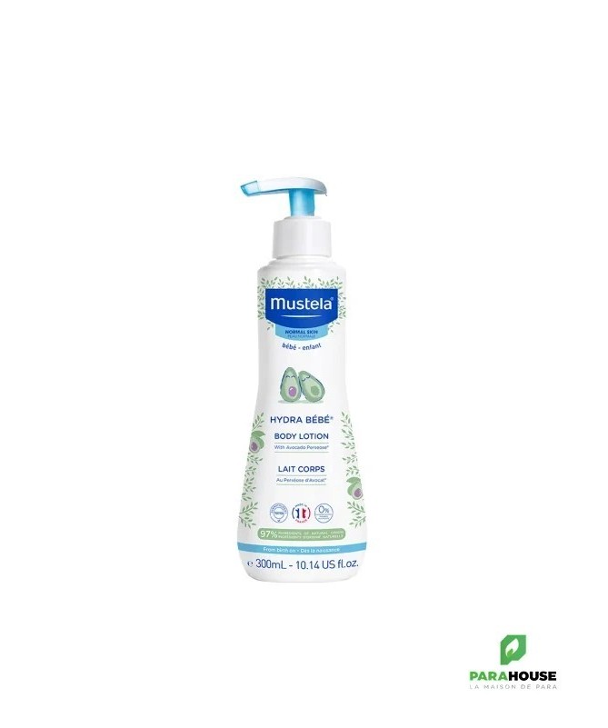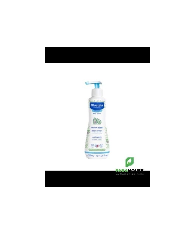 Mustela Hydra Bebe Lait Corps 300ML Mustela Le Lait hydratant corps Hydra Bébé hydrate immédiatement et durablement la peau des enfants. à l'avocat ce Lait de mustela permet de protèger et renforcer la barrière cutanée. Mustela Hydra Bebe Lait Corps peut s'utiliser au quotidien, dès la naissance. Sa texture fluide et son odeur unique sont plébiscitées par les parents. La peau des bébés est comme nous, elle a soif ! Le Lait Hydra Bébé hydrate immédiatement et durablement la peau en la laissant souple et douce. Sa texture fluide et légère est particulièrement adaptée au corps. Notre ingrédient phare, issu de l'avocat, provient de filières d'approvisionnement responsables. Il renforce la barrière cutanée et protège le capital cellulaire de la peau. Composition : Il est également associé à : L’huile de tournesol, riche en stérol, source d’acides gras essentiels, qui hydrate. La Vitamine E, qui protège la peau des agressions pour la garder souple et douce. La glycérine d’origine végétale, qui hydrate et protège de l’évaporation de l’eau. AQUA/WATER/EAU, HELIANTHUS ANNUUS (SUNFLOWER) SEED OIL, GLYCERIN, POLYGLYCERYL-6 DISTEARATE, CETYL ALCOHOL, 1,2-HEXANEDIOL, CERA ALBA/BEESWAX CIRE D’ABEILLE, HYDROXYETHYL ACRYLATE/SODIUM ACRYLOYLDIMETHYL TAURATE COPOLYMER, PARFUM (FRAGRANCE), JOJOBA ESTERS, CAPRYLYL GLYCOL, SODIUM STEAROYL GLUTAMATE, POLYGLYCERYL-3 BEESWAX/ POLYGLYCERYL-3 CIRE D’ABEILLE, TOCOPHERYL ACETATE, POLYSORBATE 60, SORBITAN ISOSTEARATE, CITRIC ACID, PERSEA GRATISSIMA (AVOCADO) FRUIT EXTRACT. 97% d’ingrédients d’origine naturelle. Conseils d'Utilisation : Le lait pour le corps Hydra bebe s'utilise le matin et le soir. Son format pompe est particulièrement bien adapté à un usage une main. Étape 1 : Appuyer une fois sur la pompe pour recueillir le lait dans votre main. Étape 2 : Appliquer lait de corps mustela bebee délicatement le lait sur l'ensemble du corps de bébé. Étape 3 : Un petit massage est bienvenu. Ou alors un petit bisou si vous n'avez pas le temps.