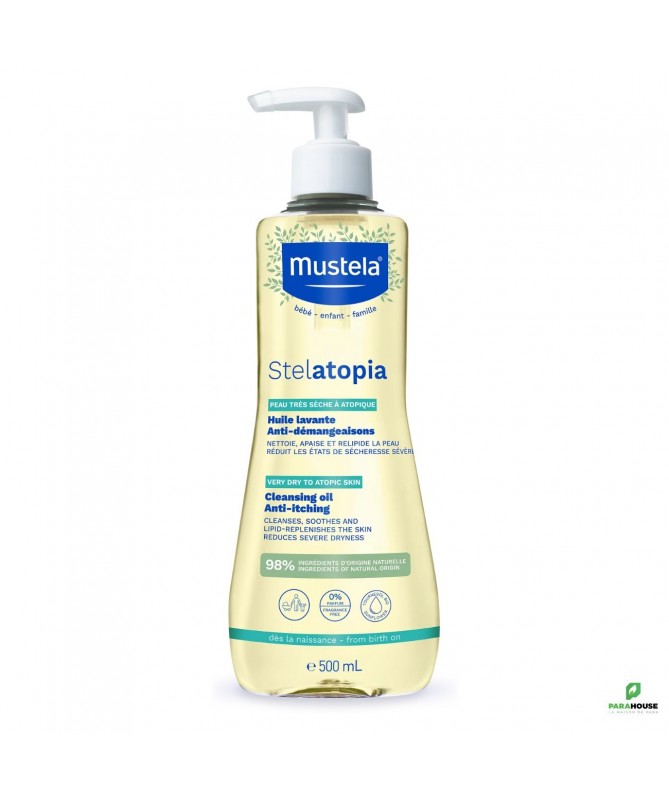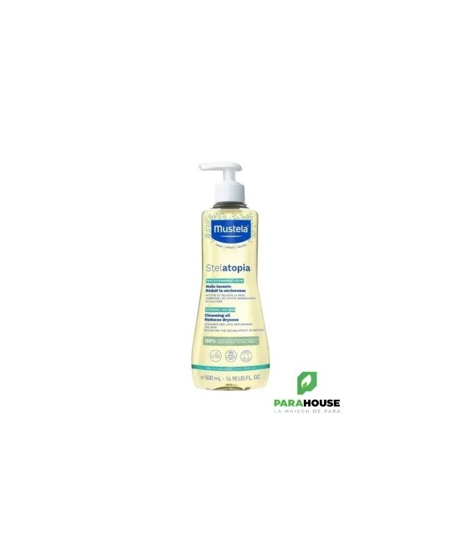 MUSTELA Stelatopia Huile Lavante 500ML L'Huile Lavante anti-démangeaisons Stelatopia nettoie en douceur les peaux très sèches à atopiques, des bébés dès la naissance, et de toute la famille. Elle relipide la peau et soulage les sensations d'inconfort et de tiraillement. Elle laisse la peau plus souple et plus douce, grâce aux vertus de son ingrédient phare, l'Oléodistillat de tournesol certifié Bio. Sa formule est sans parfum, vegan et composée à 98% d'origine naturelle. MUSTELA Stelatopia Huile Lavante nettoie en douceur, protège de l'effet desséchant de l'eau calcaire et enveloppe la peau d'un film protecteur. La mousse onctueuse de notre huile lavante Stelatopia se rince rapidement, et se dilue aussi très bien dans l'eau du bain pour en faire une huile de bain ! Composition : AQUA / WATER / EAU, GLYCERIN, CAPRYLYL / CAPRYL GLUCOSIDE, HYDROXYPROPYL GUAR, CITRIC ACID, SODIUM BENZOATE, POTASSIUM SORBATE, PERSEA GRATISSIMA (AVOCADO) FRUIT EXTRACT, HELIANTHUS ANNUUS (SUNFLOWER) SEED OIL UNSAPONIFIABLES*. 98% d'ingrédients d'origine naturelle. Conseils d'utilisation : Pratique et facile à utiliser, son format pompe permet d'obtenir en une pression la dose voulue, sans gâchis. L'huile lavante convient pour laver le corps et les cheveux. Appuyer sur la pompe - une fois suffit, et verser au creux de la main. Verser directement dans l'eau du bain ou appliquer sur peau mouillée. Laver délicatement le corps et le cuir chevelu de bébé en massant légèrement. Rincer, et terminer par un séchage tout doux (idéalement, en tapotant avec une serviette en coton propre)