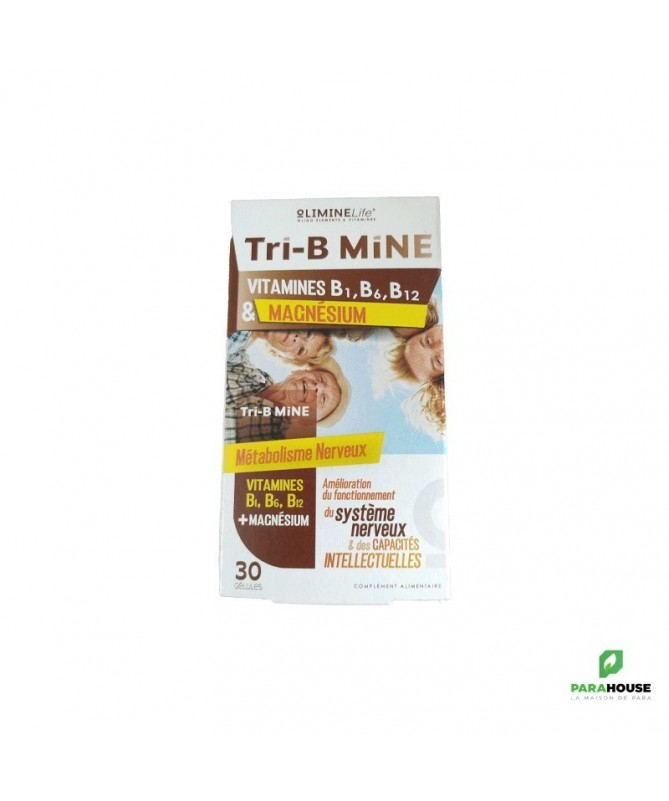 LE RÔLE DU MAGNESIUM ET DU COMPLEXE DE VITAMINES B:Les vitamines Bl. B6 et B12 agissent en synergie avec le magnésium pour contribuer au bon fonotionnement du cerveau et de l'ensemble du système nerveux.En association, le complexe de vitamines B et le magnésium ont des effets positifs sur le stress et l'irritabilité et sont un allié incontournable dans les l'équilibre psychique en contribuant à la synthèse de certains neurotransmetteurs comme la sérotonine. la mélatonine et la dopamine.DANS QUEL CAS UTILISER CE PRODUIT :• Nervosité, irritabilité, fatigue et faiblesse• Troubles mineurs du sommeil• Amélioration du fonctionnement du système nerveux et des capacités intellectuelles• Contractions et crampes musculaires, fourmillement• Prévention contre le risque de maladies cardiovasculairesIngrédientsPour 1 GéluleAPJMagnésium marin63 mg9,2%Vitamine B61.4 mg100%Vitamine Bl1.1 mg100%Vitamine B122,4 µg100%Cellulose miqsp un gélule