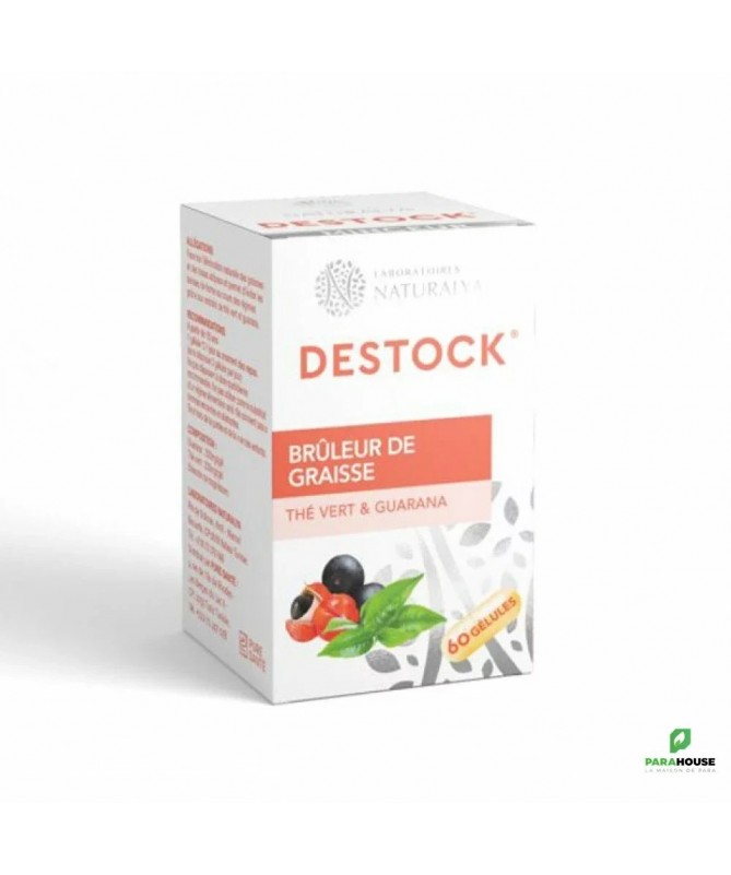 NATURALYA DESTOCK BRULEUR DE GRAISSES 60 Gelules NATURALYA DESTOCK BRULEUR DE GRAISSES : Favorise l’élimination naturelle des graisses et des tissus adipeux Permet d’éviter les baisses de forme au cours des régimes grâce aux extraits de thé vert et de guarana Pour vous aider à contrôler votre poids, DESTOCK associe dans sa formulation les meilleurs ingrédients. Réputés pour leur capacité à augmenter la dépense énergétique corporelle, le thé vert et le guarana favorisent aussi la combustion et le déstockage des graisses. Leurs propriétés drainantes et stimulantes contribuent aussi à affiner la silhouette tout en gardant l’organisme en bonne forme.