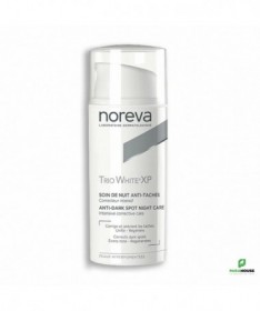 NOREVA Trio White SOIN DE NUIT DÉPIGMENTANT INTENSIF 30ML NOREVA Trio White SOIN DE NUIT DÉPIGMENTANT INTENSIF corrige rapidement et visiblement les taches pigmentaires sur tous les types de peau, même les plus sensibles. Trio White® Soin de nuit intensif agit efficacement durant la nuit en bloquant la production de mélanine. Résultat : L’apparition de nouvelles tâches est freinée, et les taches brunes présentes sur le visage, les mains ou le décolleté, s’estompent jour après jour. Composition: Extrait de fleur d’Immortelle : protège les cellules Agents Hydratants et Filmogènes : assurent souplesse, confort et élasticité de la peau L’Active White : permet d’éliminer rapidement les cellules chargées en mélanine Reductol & Vita C2G, synergie d’actifs nouvelle génération : permettent de contrôler la production de mélanine L’α-ABT : agit directement sur l’enzyme responsable de la production de mélanine NB : Sans paraben, Délicatement parfumé Conseils d'utilisation Il est indiqué d'appliquer Trio White SOIN DE NUIT le soir sur une peau parfaitement nettoyée et séchée, sur l’ensemble du visage, cou, mains, décolleté ou autre zone à traiter. Utilisé en complément de Trio White Soin de Jour, Trio White Soin de Nuit Intensif hydrate, sublime et unifie le teint durablement