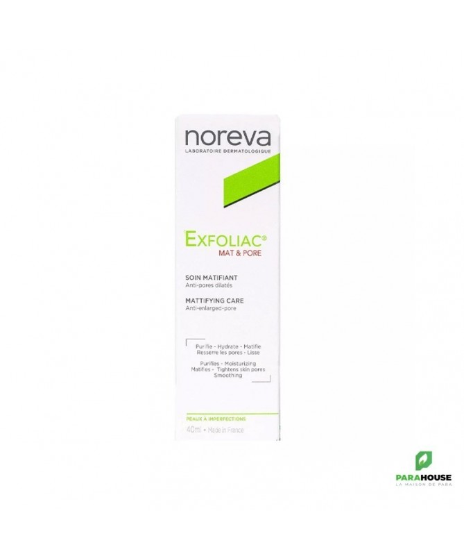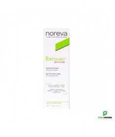 NOREVA EXFOLIAC Mat & Pore Soin Matifiant 30ML NOREVA EXFOLIAC Mat & Pore est une formule spécialement adaptée aux peaux grasses et aux pores dilatés. Exfoliac Mat & Pore, une formule novatrice pour resserrer les pores, lisser et matifier la peau en un seul geste. Son effet peeling doux permet de purifier la peau et de favoriser le renouvellement cellulaire tout en préservant l’hydratation cutanée. Une efficacité testée sur les peaux à imperfections : 90% peau plus lisse 86% resserre les pores 81% peau matifiée NOREVA EXFOLIAC Mat & Pore possède une formule innovante avec des micro-éponges pour matifier et réguler la production de sébum, des BHA (acide salicylique) et des AHA (lactate d’ammonium et acide mandélique) pour un effet peeling doux. En plus de tout ça, le complexe bardane-zinc-biotine qui permet de réguler la production de sébum. Trio d’actifs séborégulateur Délicatement parfumé Effet peeling doux Peau plus lumineuse Composition : AQUA (WATER), BUTYLENE GLYCOL, AMMONIUM LACTATE, C-12/15 ALKYL BENZOATE, MANDELIC ACID, METHYL METHACRYLATE CROSSPOLYMER, PENTYLENE GLYCOL, ARACHIDYL ALCOHOL, BEHENYL ALCOHOL, CETYL LACTATE, UNDECANE, PEG-100 STEARATE, GLYCERYL STEARATE, SALICYLIC ACID, ARACHIDYL GLUCOSIDE, TRIDECANE, SODIUM HYDROXIDE, CETYL ALCOHOL, PARFUM (FRAGRANCE), ARCTIUM MAJUS ROOT EXTRACT, LACTIC ACID, XANTHAN GUM, CHLORPHENESIN, ZINC SULFATE, BIOTIN, TOCOPHEROL. Conseils d'utilisation : Appliquer EXFOLIAC Mat & Pore matin et soir sur l’ensemble du visage préalablement nettoyé. Eviter le contact avec les yeux. Eviter toute exposition au soleil après application.