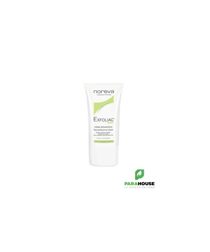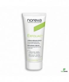 NOREVA Exfoliac CRÈME RÉPARATRICE 40ML NOREVA Exfoliac Creme Reparatrice est développée spécifiquement pour restaurer les peaux asséchées par des traitements médicamenteux irritants. Exfoliac Crème réparatrice apaise et hydrate intensément la peau du visage, lle répare le film hydro-lipidique et restaure la barrière cutanée. Hautement concentrée en actifs nutritifs et hydratants (22%), elle répare le film hydrolipidique et restaure la barrière cutanée. Les sensations d’irritation et de tiraillement sont supprimées, procurant ainsi un confort et un apaisement instantanés et durables. Non acnéigène et non comédogène. C'est aussi une bonne base de maquillage. Sa formule, spécialement conçue pour accompagner les traitements irritants contre les imperfections, est composée d’acide hyaluronique de haut poids moléculaire, de glycérine, beurre de karité, de cire d’abeille, de phytosqualane, d’abyssine et de céramides, des actifs nutritifs divers, pour nourrir et hydrater intensément. En complément, la formule contient du bisabolol reconnu pour ses propriétés apaisantes. Résultat : les sensations d’irritation et de tiraillement sont immédiatement supprimées, procurant ainsi un confort et un apaisement instantanés. Résultats : 92% : diminue les sensations d'échauffemen 89% : diminue les sensations de tiraillement 98% : diminue les sensations de démangeaison 94% : apporte du confort immédiat 87% : apporte du confort à long terme 89% : la peau reste douce et souple Composition: AQUA (WATER), SQUALANE, GLYCERIN, ISONONYL ISONONANOATE, BUTYROSPERMUM PARKII (SHEA) BUTTER, ISOHEXADECANE, CETYL ALCOHOL, ALUMINUM STARCH OCTENYLSUCCINATE, HYDROXYETHYL ACRYLATE/SODIUM ACRYLOYLDIMETHYL TAURATE COPOLYMER, GLYCERYL STEARATE, PEG-100 STEARATE, CERA ALBA, BISABOLOL, ALTEROMONAS FERMENT EXTRACT, CHOLESTEROL, TOCOPHERYL ACETATE, TOCOPHERYL LINOLEATE, CERAMIDE NG, TOCOPHEROL, BUTYLENE GLYCOL, BENZYL ALCOHOL, PARFUM (FRAGRANCE), POLYSORBATE 60, CHLORPHENESIN, DISODIUM EDTA, SALICYLIC ACID, SODIUM HYALURONATE, HEXYL CINNAMAL, SODIUM HYDROXIDE, LINALOOL, SORBIC ACID, SORBITAN ISOSTEARATE, BENZYL SALICYLATE, CITRONELLOL, GERANIOL, ALPHA-ISOMETHYL IONONE. Non acnéigène et non comédogène. Conseils d'utilisation: Il est indiqué d'appliquer Exfoliac CRÈME RÉPARATRICE 2 fois par jour ou plus sur une peau propre et sèche,après traitement ou soin dermatologique.