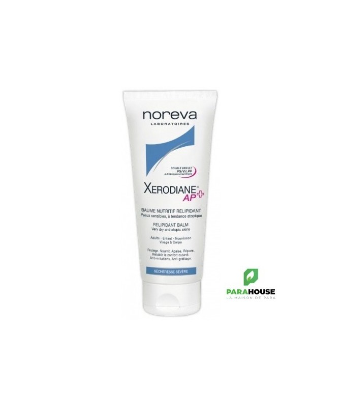 NOREVA XERODIANE AP+ BAUME RELIPIDANT 200ML NOREVA XERODIANE AP BAUME est le 1er Baume anti-grattage Double brevet. C'est est un traitement de pointe, doux et hydratant pour les peaux sensibles, sèches, très sèches et sujettes à l'eczéma. Ses puissantes propriétés anti-inflammatoires et cicatrisantes réduisent l'inflammation et les démangeaisons, aident à prévenir la sécheresse et l'irritation - les principaux déclencheurs de l'eczéma. Noreva xerodiane ap est composé d'actifs subministrant des soins et du confort immédiats. Sa texture riche et fondante permet une application facile, pour que les peaux fragiles retrouvent un confort optimal et un apaisement durable pendant 24h. Le baume hydratant nutritif Xerodiane AP Relipidant contient deux complexes en instance de brevet, PS-PP et Acide Hyaluronique-ion d'argent, qui agissent sur la synthèse des lipides, favorisent le calme et rééquilibrent la microbiocénose. Dès la première application, le baume nutrisant Xerodiane® AP+ nourrit, hydrate, apaise et répare les irritations. Noreva xerodiane ap est riche en physiophyilag, un actif stimulant la carence en filaggrine typique des peaux atopiques sèches, et en acides gras Oméga 3 & 6 qui restaurent un film hydrolipidique protecteur. Protégée, équilibrée, restaurée, apaisée et calmée : la peau retrouve son rôle protecteur, limitant l'envie de se gratter et empêchant les pénétrations de substances agressives. Composition : AQUA (WATER), PARAFFINUM LIQUIDUM (MINERAL OIL), GLYCERIN, PENTAERYTHRITYL DISTEARATE, PROPANEDIOL, GLYCERYL STEARATE, PEG-100 STEARATE, NIACINAMIDE, DIMETHICONE, CERA MICROCRISTALLINA, PARAFFIN, BUTYLENE GLYCOL, 1,2-HEXANEDIOL, CAPRYLYL GLYCOL, PLUKENETIA VOLUBILIS SEED OIL, ETHYLHEXYLGLYCERIN, ACRYLATES/C10-30 ALKYL ACRYLATE CROSSPOLYMER, HYDROXYETHYL ACRYLATE/SODIUM ACRYLOYLDIMETHYL TAURATE COPOLYMER, PCA, SODIUM HYDROXIDE, CI 77820 (SILVER), PHYTOSPHINGOSINE HCL, SORBITAN ISOSTEARATE, POLYSORBATE 60, CITRIC ACID, HYDROLYZED HYALURONIC ACID, TOCOPHEROL, ACETYL HEXAPEPTIDE-49. Conseils d'utilisation : Il est conseillé d'appliquer le Baume relipidant une fois par jour sur une peau préalablement nettoyée avec un produit doux sans savon Xerodiane AP. Noreva xerodiane ap peut être utilisé en complément du traitement lors de poussées de dermatite atopique. Il permet de s’habiller sans attendre grâce à sa galénique inégalable.
