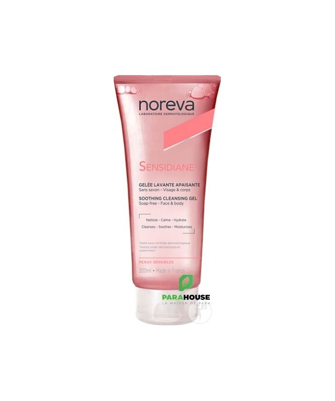 NOREVA Gelée Lavante Apaisante 200ML NOREVA Sensidiane Gelée Lavante Apaisante est une solution nettoyante ultra-douce qui apaise et hydrate au quotidien, adaptée aux peaux sensibles à intolérantes. Sensidiane Gelee Lavante est indiquee aux peaux sensibles, réactives et intolérantes, pour toute la famille : dès la naissance, enfant, adultes. La Gelée lavante apaisante Sensidiane nettoie en douceur le visage et le corps, diminue les sensations d’irritations et aide la peau à retrouver son équilibre naturel. La peau est nette, hydratée et tiraille moins après le rinçage. Sa formule non parfumée respecte le pH physiologique de la peau et sa texture innovante, sous forme de gelée, est source de confort au moment du nettoyage Sa base lavante ultra-douce, formulée sans savon et d’origine végétale, permet de nettoyer le visage et le corps tout en douceu Composition : AQUA (WATER), GLYCERIN, PEG-6 CAPRYLIC/CAPRIC GLYCERIDES, SODIUM COCOAMPHOACETATE,SODIUM LAUROYL SARCOSINATE, CARBOMER, FICUS CARICA (FIG) FRUIT EXTRACT, ACETYL HEPTAPEPTIDE-4, DEXTRAN, PALMITOYL TRIPEPTIDE-8, LEVULINIC ACID, SODIUM LEVULINATE, CAPRYLYL GLYCOL, POTASSIUM SORBATE, BUTYLENE GLYCOL, XANTHAN GUM, CITRIC ACID, SODIUM CHLORIDE, SODIUM BENZOATE, SODIUM HYDROXIDE, TETRASODIUM EDTA. Conseils d'utilisation : Faire mousser une noisette de Sensidiane Gelée Lavante au creux de la main, masser légèrement le visage et le corps, et rincer délicatement. Eviter le contact avec les yeux. Sans savon, non parfumée.