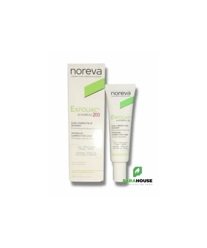 NOREVA Exfoliac ACNOMEGA 200 SOIN KERATOREGULATEUR MATIFIANT Noreva Exfolic Acnomega 200 est spécialement formulé pour les peaux à imperfections modérées à sévères. Noreva Exfoliac Acnoméga 200 Soin kératorégulateur matifiant désobstrue les pores et gomme les imperfections. Acnoméga agit au niveau des couches superficielles et plus profondes de l’épiderme, il permet une action kérato-active majeure et un effet séborégulateur et antibactérien. Résultat : La peau redevient lisse, nette et matifiée Composition: Alpha et Omega HA : efficacité optimisée agissant sur les couches superficielles et profondes de l’épiderme pour une tolérance optimale et un pH ajusté. BHA : action renforcée pour traiter l’acné modérée à sévère NB : Sans paraben, Sans conservateur, Non comédogène, Bonne tolérance Conseils d'utilisation: Il est indiqué d'appliquer NOREVA Exfoliac ACNOMEGA 200 matin et soir sur une peau sèche, préalablement nettoyée avec Exfoliac® Gel moussant. Peut s’utiliser seul ou en accompagnement d’un traitement médical.