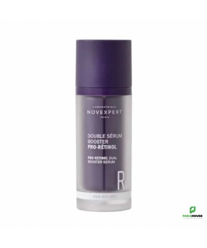 NOVEXPERT DOUBLE SERUM BOOSTER PRO RETINOL 30ML NOVEXPERT DOUBLE SERUM BOOSTER PRO RETINOL ; Un DOUBLE SERUM, une DOUBLE FORMULATION réunissant pour la première fois en cosmétique 3 complexes anti-âge : le Pro-Rétinol, le Bakuchiol (Rétinol like) et 2 acides de fruits doux (AHA & PHA). NOVEXPERT DOUBLE SERUM est un soin à utiliser uniquement le soir et déjà certifié "soin thérapeutique anti-rides" en Corée, pour une peau visiblement plus lisse et illuminée au réveil. En 1 nuit, peau lissée pour 100% des utilisateurs. En 56 nuits, rides réduites de moitié. Composition : Aqua (Water) °, Glycerin°, Isoamyl Laurate°, Caprylic/Capric Triglyceride°, Dicaprylyl Ether°, Lactic Acid°, Silica°, Crambe Abyssinica Seed Oil°, Sodium Citrate°, Galactoarabinan°, Bakuchiol°, Lauroyl Lysine°, Propanediol°, Beta-Carotene°, Daucus Carota Sativa (Carrot) Root Extract°, Stevia Rebaudiana Leaf/Stem Extract°, Xanthophylls°, Gluconolactone°, Laminaria Ochroleuca Extract°, Tocopherol°, Biosaccharide Gum-2°, Bacillus Ferment°, Adenosine°, Hippophae Rhamnoides Oil°, Punica Granatum Seed Oil°, Rosmarinus Officinalis (Rosemary) Leaf Extract°, Glyceryl Caprylate°, Acacia Senegal Gum°, Xanthan Gum°, Sodium Surfactin°, Pentylene Glycol°, Glycine Soja (Soybean) Oil°, Helianthus Annuus (Sunflower) Seed Oil°, Citric Acid°, Parfum (Fragrance) °, Arginine° ° 100% du total est d'origine naturelle. Conseils d'utilisation : Le Double Sérum Pro-Rétinol est un soin de nuit, il s'applique donc le soir. Appuyez une fois sur la pompe et mélangez les 2 formules dans le creux de la main. Appliquez sur le visage et le cou - évitez le contour des yeux. Afin de permettre à votre peau de s'habituer à la haute teneur en actifs du Double Sérum et notamment à la présence d'acides de fruits doux, commencez par appliquer le sérum 1 nuit sur 2 pendant une semaine, puis tous les soirs sur les semaines suivantes. Ne pas appliquer en cas d’exposition au soleil intense ou durable. En cas d'exposition solaire modérée (<30min/jour), utilisez une protection solaire. 1ère utilisation : commencez par appliquer le sérum 1 nuit sur 2 pendant une semaine, puis tous les soirs sur les semaines suivantes afin de permettre à votre peau de s'habituer à la présence d'acides de fruits doux.