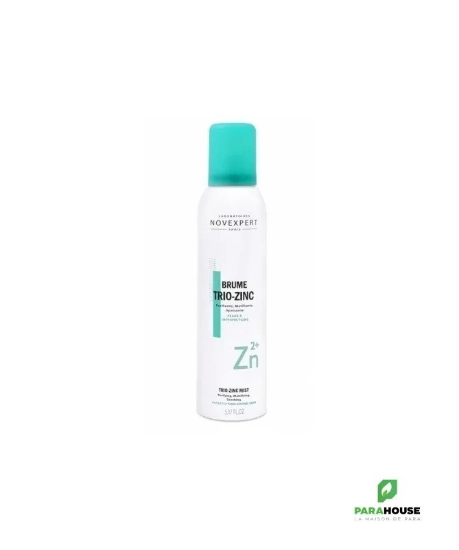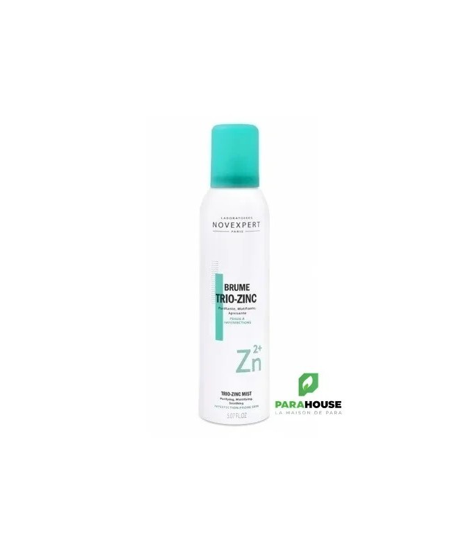 NOVEXPERT Brume Trio-Zinc 150ML NOVEXPERT Brume Trio Zinc assainit l'épiderme, apaise et limite les brillances dues à l'excès de sébum. P urifiante , apaisante et matifiante . La Brume trio zinc Novexpert dispose d’un avantage certain sur les autres catégories de cosmétiques : elle peut être utilisée plusieurs fois dans la journée et selon des besoins différents. Resultats : -67 % Réduction de l'excès de sébum 23 % Apaisant Composition : Ingrédients : Aqua (Water)°, Zinc Gluconate°, Zinc PCA°, Zinc Lactate°, Nitrogen° 100% du total est d'origine naturelle Haute concentration en actifs Compatible femmes enceintes et allaitantes Made in France Végan & Bio Formulé par des Docteurs Conseils d'utilisation : Tenir à 30 cm du visage, fermez les yeux et vaporisez NOVEXPERT Brume Trio Zinc 2 à 3 fois pour couvrir le visage. Laissez agir 10 secondes et séchez. À utiliser comme un tonique après le nettoyage comme un matifiant instantané comme un rafraîchissant cutané comme un fixateur de maquillage La Brume Trio Zinc de Novexpert peut être utilisée à tout moment de la journée pour matifier et purifier instantanément la peau sans la dessécher. 16 secondes suffisent : 3 secondes de vaporisation, 10 secondes pour laisser agir et 3 secondes pour sécher délicatemen