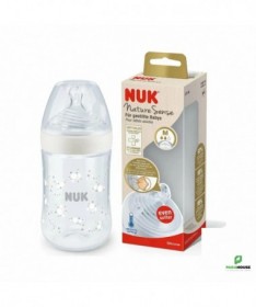 NUK NATURE SENSE BIBERON M 260ML NUK NATURE SENSE BIBERON se caractèrise par : Les plus produit : 99% des bébés acceptent la tétine Nuk Nature Sense 98% des mères estiment que les micro-perçages créent une expérience de tétée plus naturelle 92% des mères recommandent le biberon Nuk Nature Sense Caractéristiques : Biberons incassables Capuchon anti-fuite Embout ultra souple Zone extra douce qui rend l'embout aussi souple que le sein maternel. Micro-perçages reproduisent les micro-canaux lactifères du sein et assurent un débit de tétée régulier et naturel. Anti-colique Valve anti-colique innovante permet une tétée ininterrompue comme au sein et empêche d'avaler de l'air, ce qui réduit le risque de coliques. Forme similaire au sein La base élargie et souple de la tétine offre une sensation de succion naturelle dès que bébé y pose ses lèvres.
