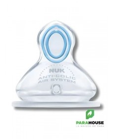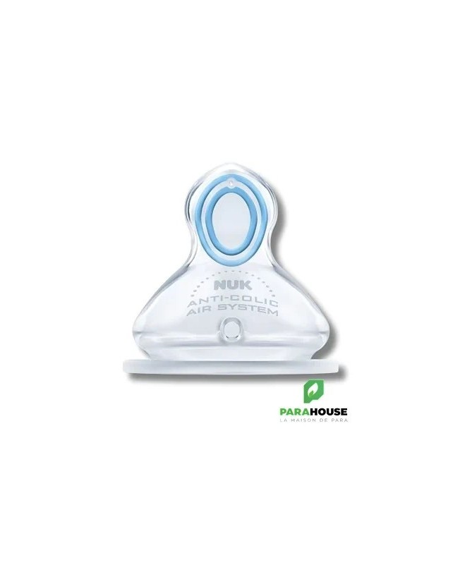 Nuk Tétine First Choice 0-6 Mois Mest conçue pour offrir confort et sécurité aux bébés de 0 à 6 mois grâce à sa forme anatomique en silicone souple et sans BPA.Confort optimal :Forme anatomique et silicone doux pour une succion naturelle.Développement bucco-dentaire :Favorise la croissance harmonieuse de la mâchoire et du palais.Sécurité :Sans BPA, parfaitement adaptée aux nourrissons.Réduction des coliques :Conception qui limite l’ingestion d’air.Facilité d’entretien :Lavable à l’eau chaude ou au lave-vaisselle.Indications :Idéale pour une tétée naturelle et confortable, tout en aidant à réduire coliques et reflux chez les bébés de 0 à 6 mois.Conseils d’utilisation :Stériliser avant la première utilisation (5 minutes dans l’eau bouillante).Remplacer dès les premiers signes d’usure.Nettoyer régulièrement à l’eau chaude et au savon doux ou au lave-vaisselle.Ne pas chauffer au micro-ondes et éviter toute source de chaleur directe.