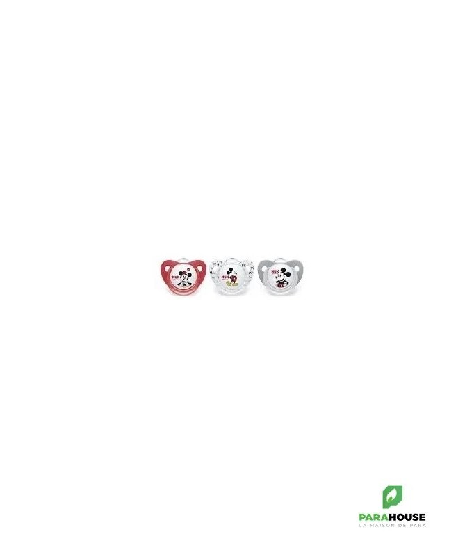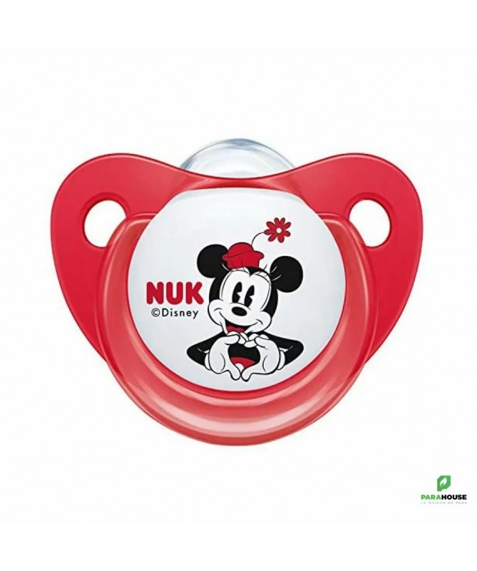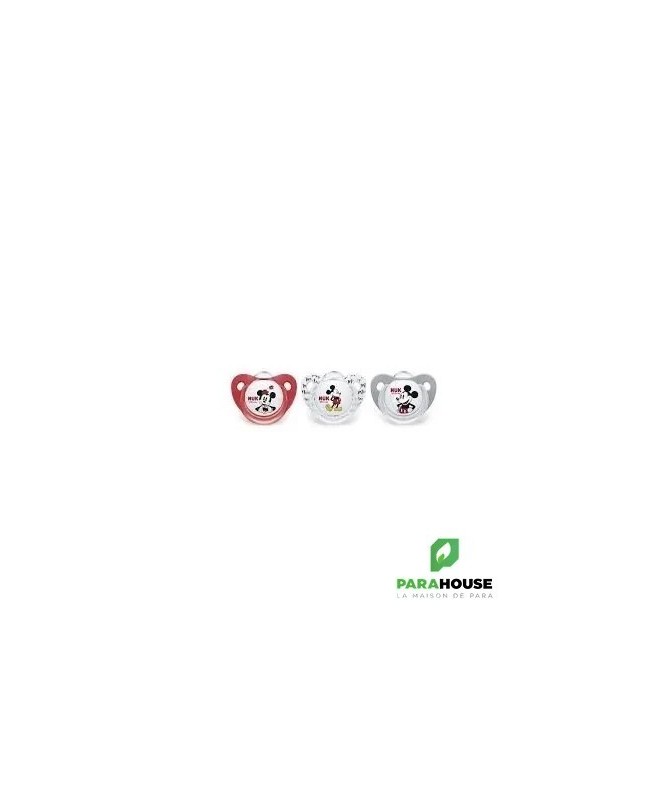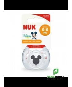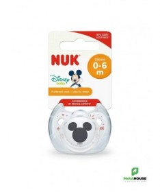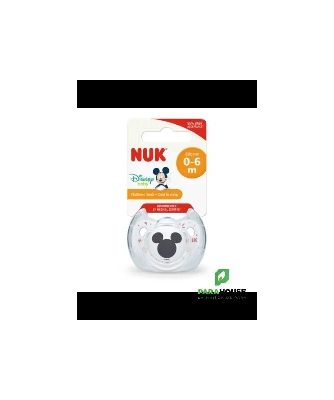 NUK Disney Baby Sucette Mickey en Silicone 0-6M NUK Disney Baby Sucette en Silicone est conçue pour être particulièrement douce pour les gencives en développement de bébé. Elle convient aux bébés de 0 à 6 mois et constitue une première tétine parfaite/ Pour une sensation en bouche agréable et beaucoup de place pour le mouvement naturel de succion, elle est idéale pour dormir.