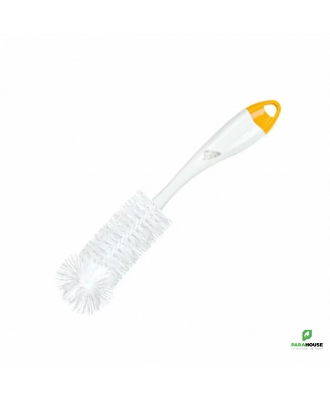 Description :Pour un nettoyage parfaitement hygiénique des biberons à large ouverture : Atteint tous les recoins du corps et du fond du biberon. Double efficacité de la brosse : fibres douces anti-éclaboussure sur le corps et souples à l'extrémité pour éliminer tous les résidus de lait Hygiène optimale : traitement antibactérien des fibres. Rince-tétine intégré au manche : compartiment ventilé.Conseils d'utilisation :brosses avec traitement anti-bactérien : repousse les bactéries** efficacité prouvée en laboratoire : effet anti-bactérien garanti sans limite de duréeavec double fibre : tête dure pour nettoyer les résidus incrustés au fond du biberon / corps plus souple pour nettoyer le corps du biberoncouleurs translucides du manchetige inoxydableAstucieux : le rince-tétine se clippe dans le manche !