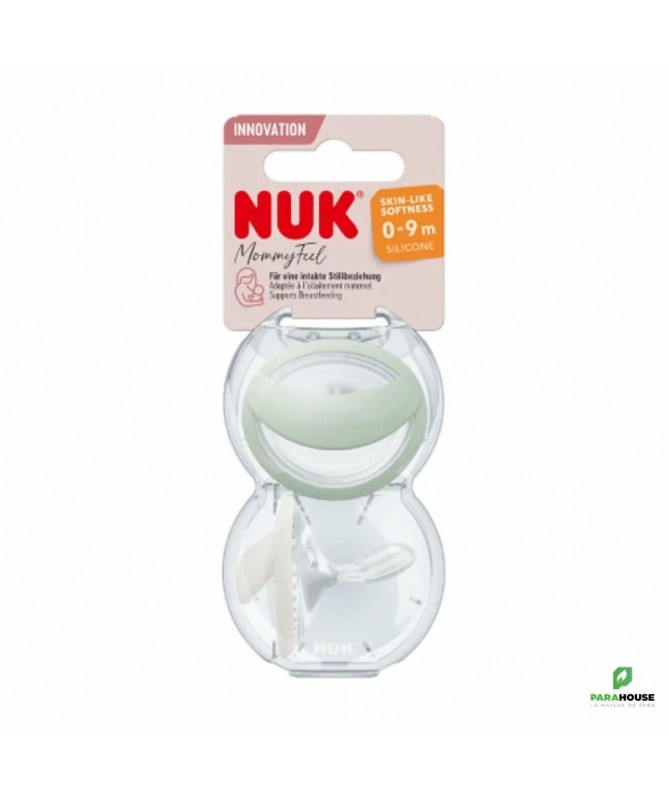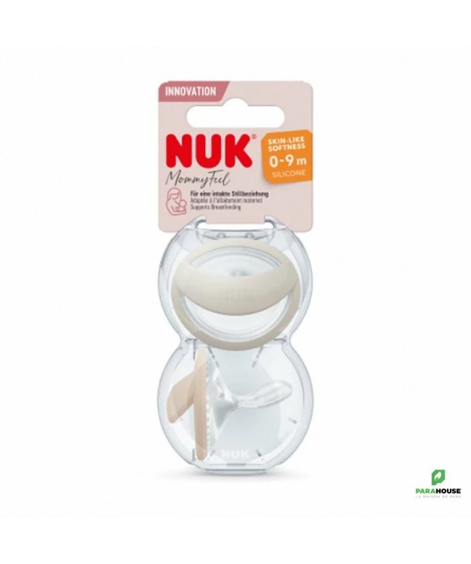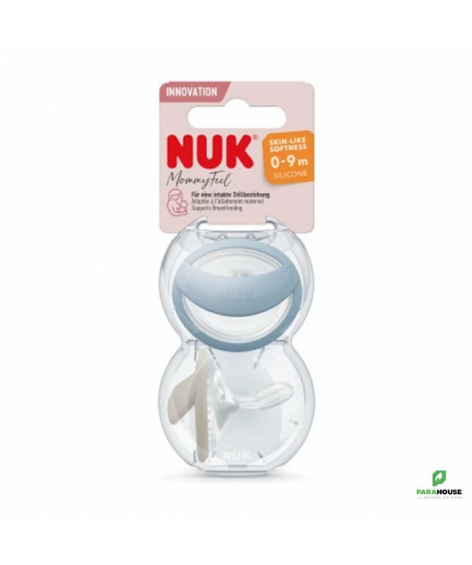 NUK 2 SUCETTES MOMMY FEEL 0-9M NUK 2 SUCETTES MOMMY FEEL 0-9M sont conçues pour apaiser sans affecter la relation d‘allaitement. A la forme du sein de la maman et le silicone dont elle est composée est aussi doux que la peau. Pour une sensation comme celle de maman. Ne provoque pas de points de pression et prévient les irritations cutanées Recommandée par des professionnels tels que les sages-femmes, les conseillères en lactation et les médecins Elle a été spécialement conçue pour la période d‘allaitement