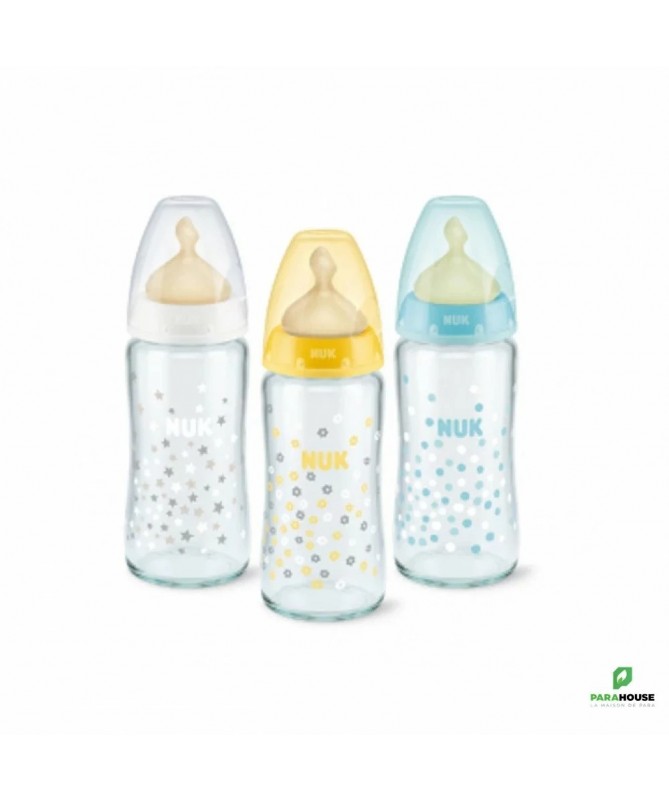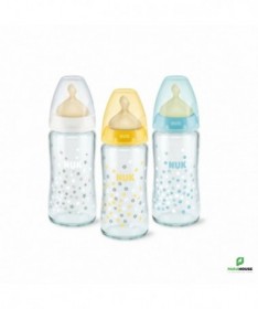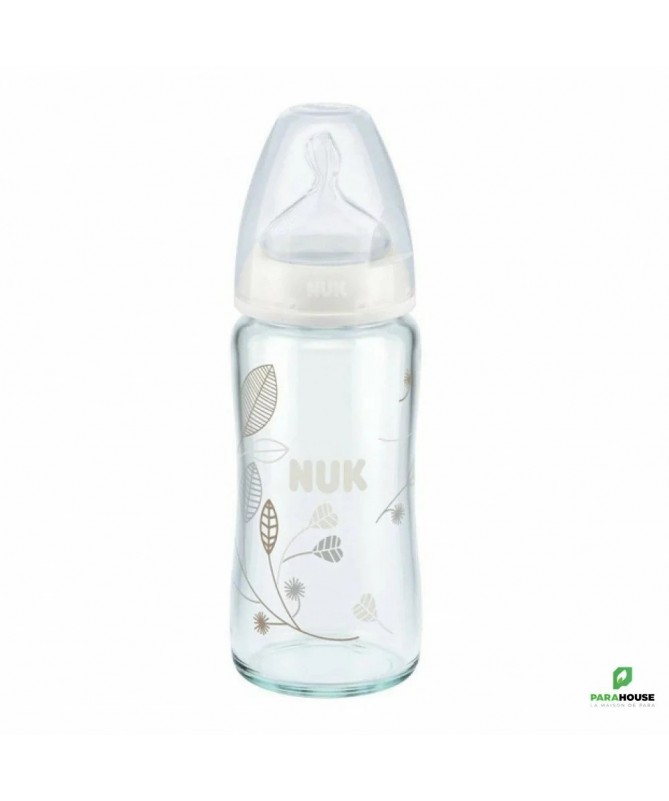 NUK Biberons Verre Serenity (0 - 6M) 240ML Ces biberons sont équipés par des tétines NUK FIRST CHOICE Taille 240ML Ils se caractérisent par une ouverture large et un capuchon clipsable.