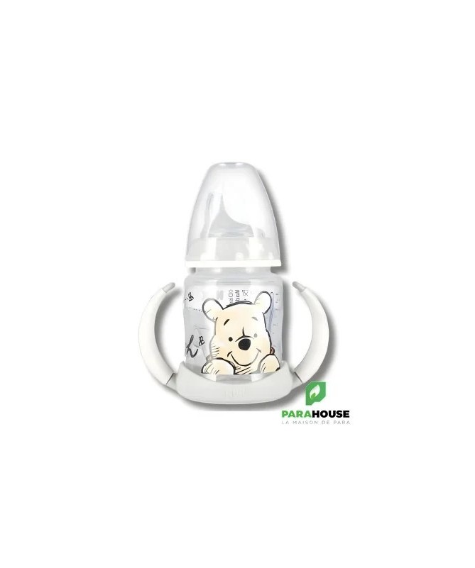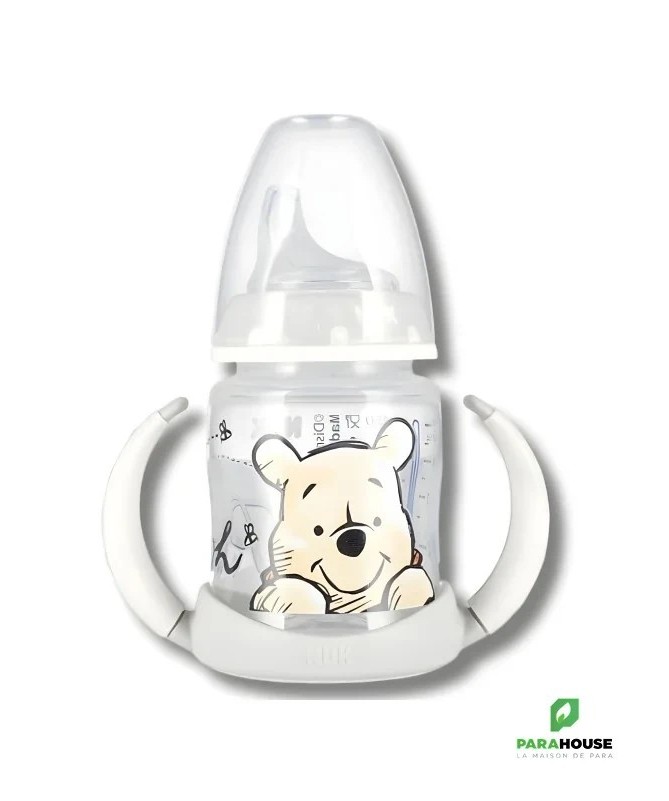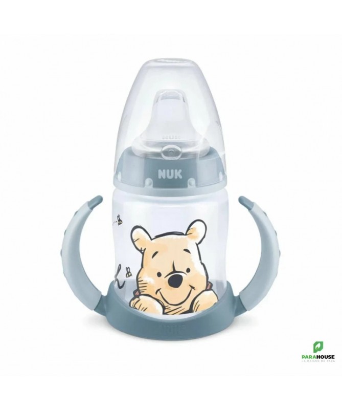 Biberon d'Apprentissage NUK First ChoiceLe biberon d'apprentissage NUK First Choice accompagne en douceur la transition de bébé vers l'autonomie, grâce à son bec verseur en silicone souple et anti-fuite. Le système intégré NUK Air System régule la pression à l'intérieur du biberon, limitant ainsi l'absorption d'air et réduisant les risques de coliques.Caractéristiques principales :Bec verseur en silicone: doux, résistant à la chaleur, facile à nettoyer et sans substances nocives.Poignées ergonomiques: conçues pour les petites mains, avec picots antidérapants pour une prise en main facile.Bouteille de 150 ml: avec une large ouverture, bague à vis, disque de fermeture et capuchon protecteur.Facile à nettoyer: chaque élément se démonte facilement, idéal pour l’hygiène et la préparation des repas.Compatibleavec tous les produits de la gamme NUK First Choice.Un choix pratique et fiable pour aider votre enfant à boire en toute autonomie.